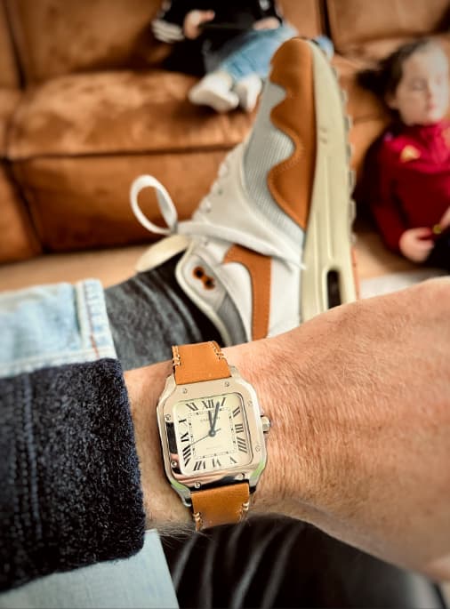 Als je hem toch op leer gaat dragen kun je ook een Santos Dumont overwegen. Dan heb je wel de santos look, maar dan een stuk goedkoper (automaat/quartz).