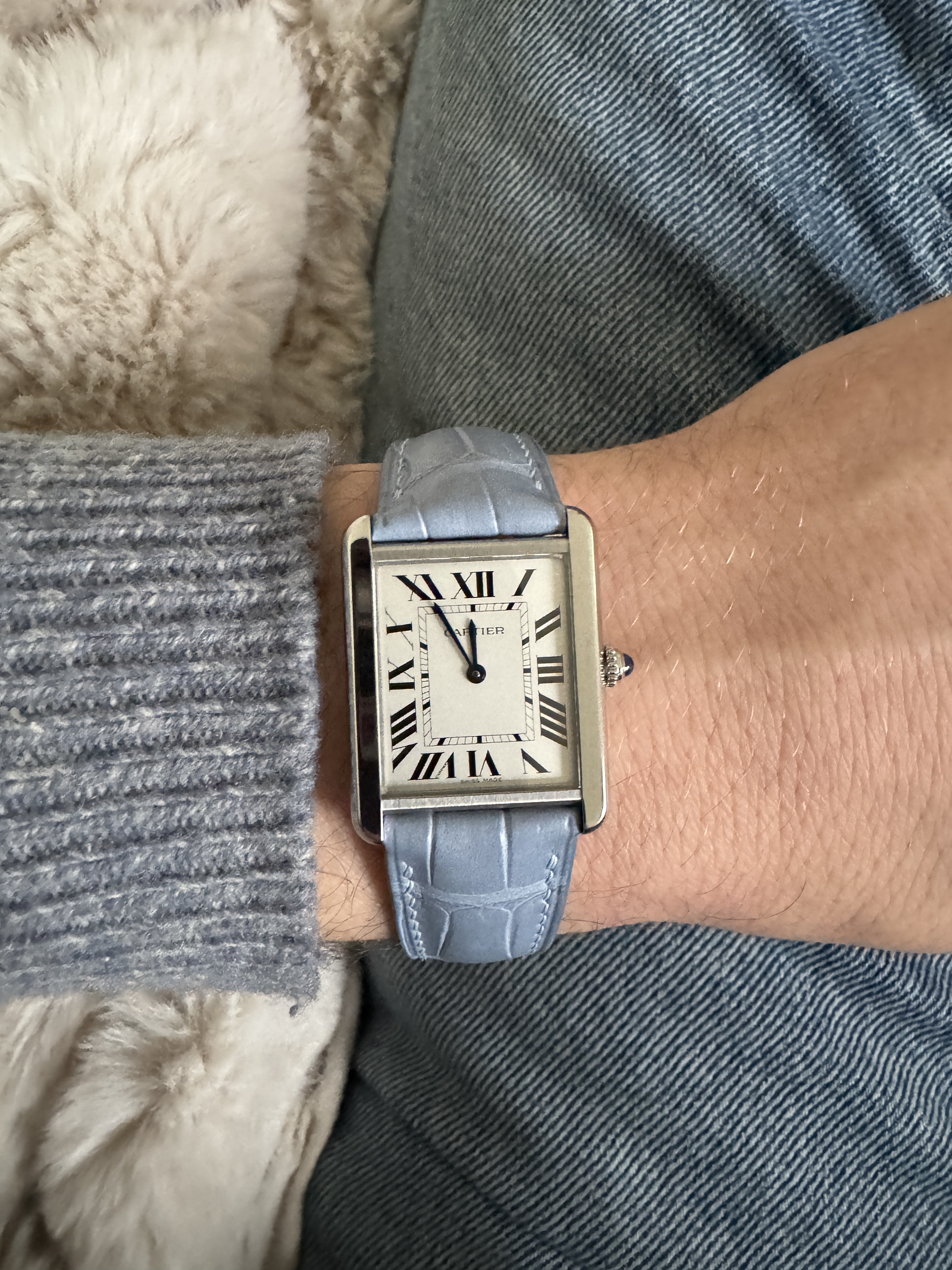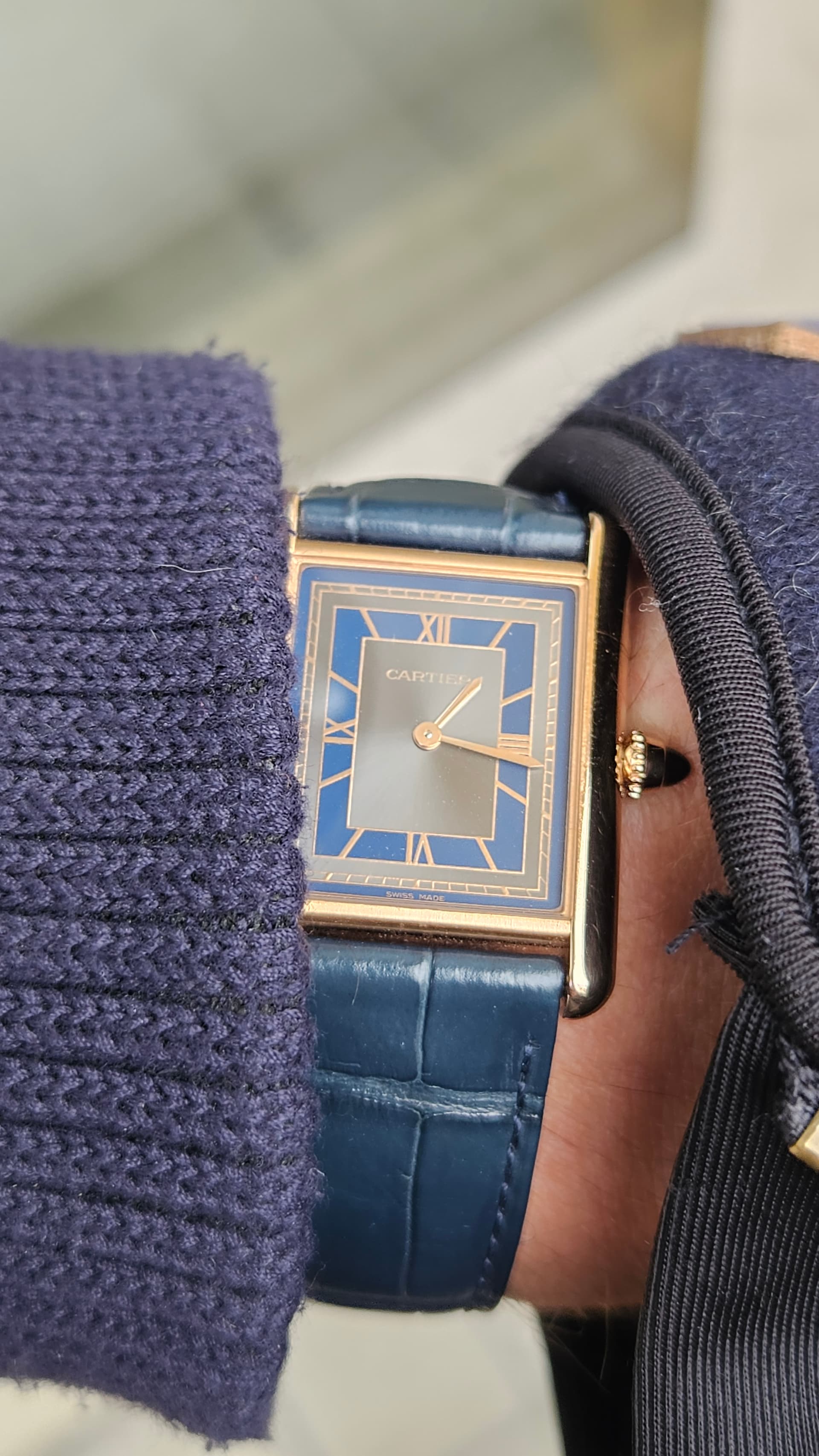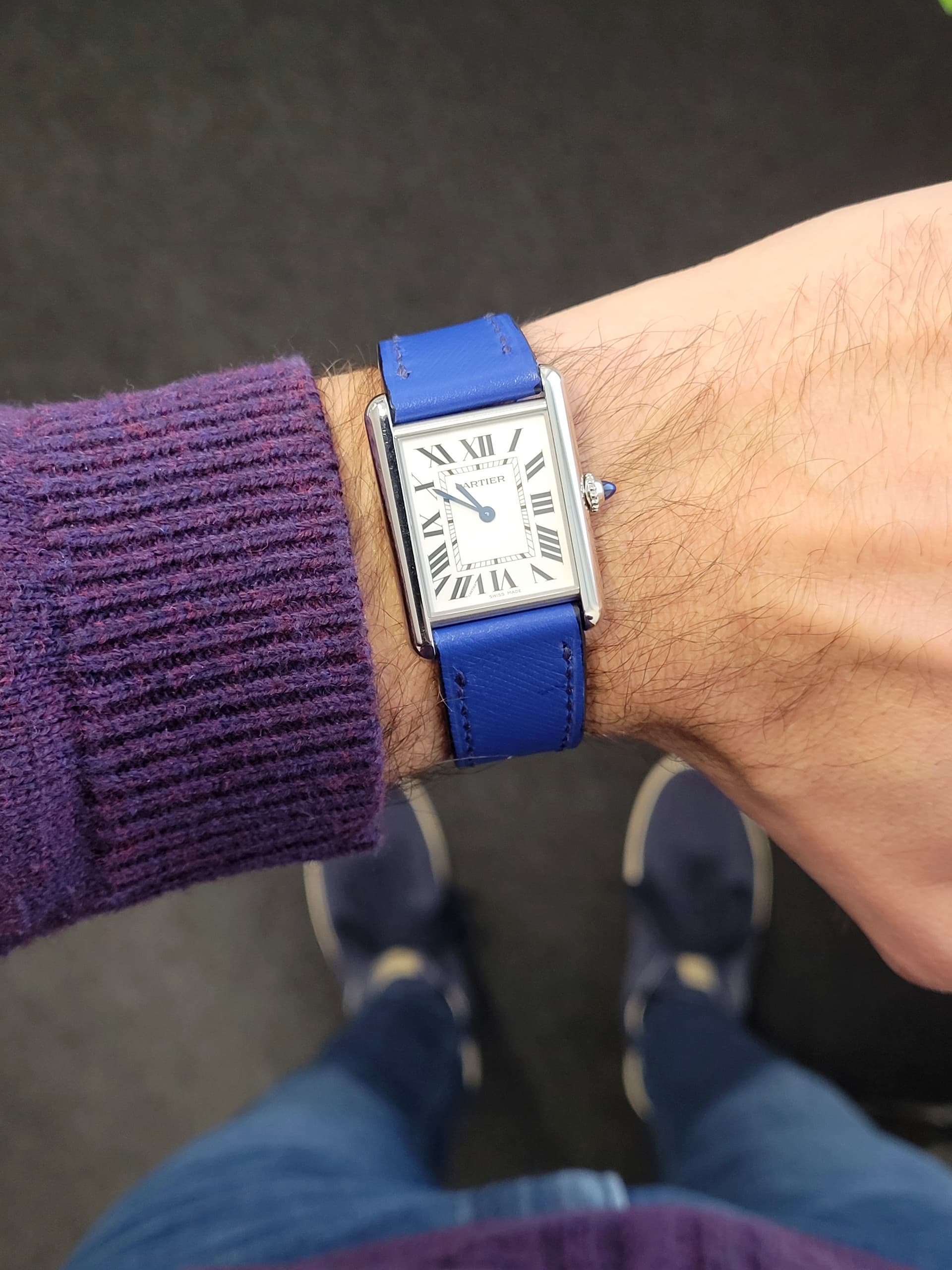 Ik vond de Santos toen te klein en heb deze niet gekocht. Jaaaaren later ben ik alsnog tot inkeer gekomen en heb ik een Santos (maat M) met bruine wijzerplaat gekocht.