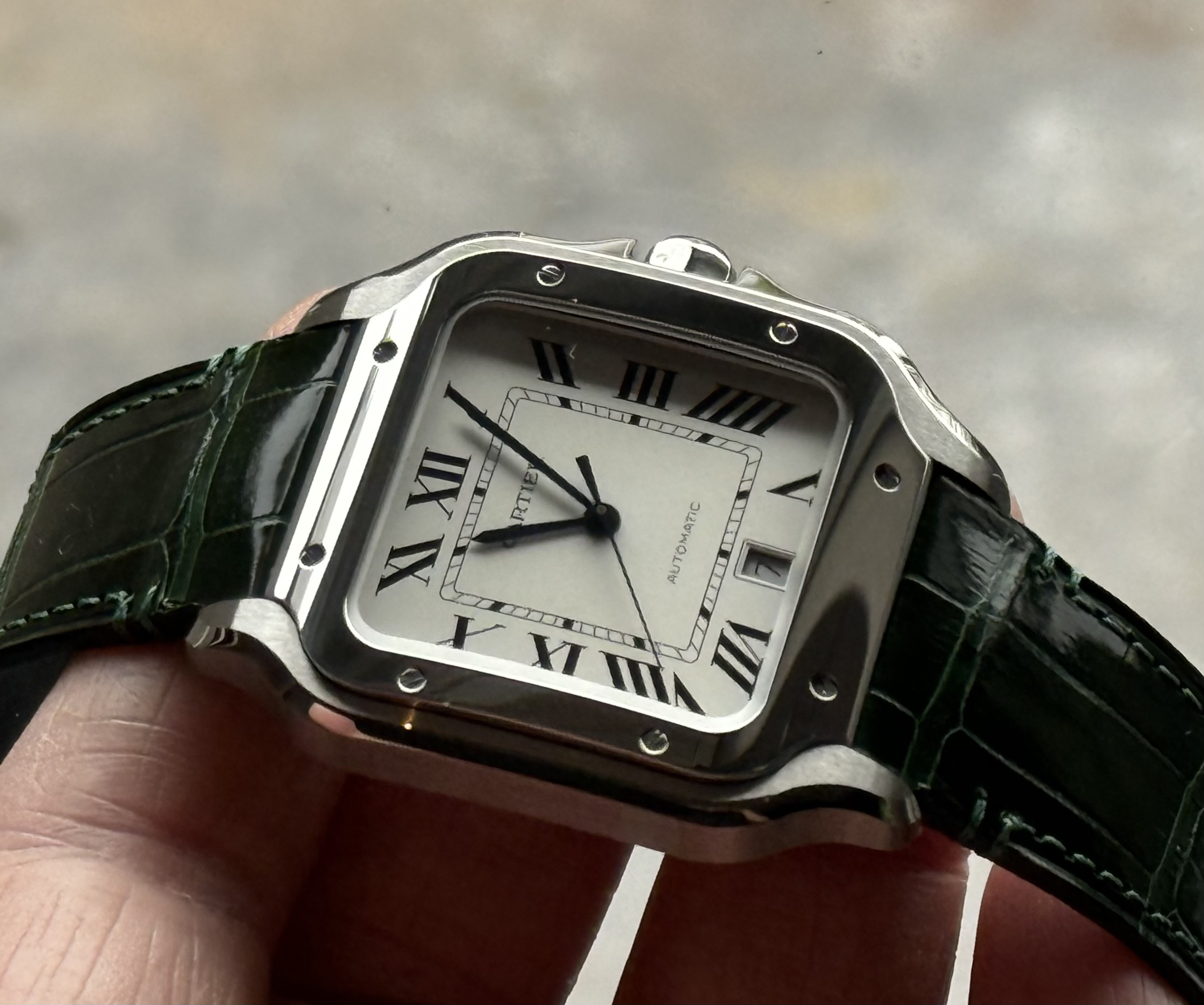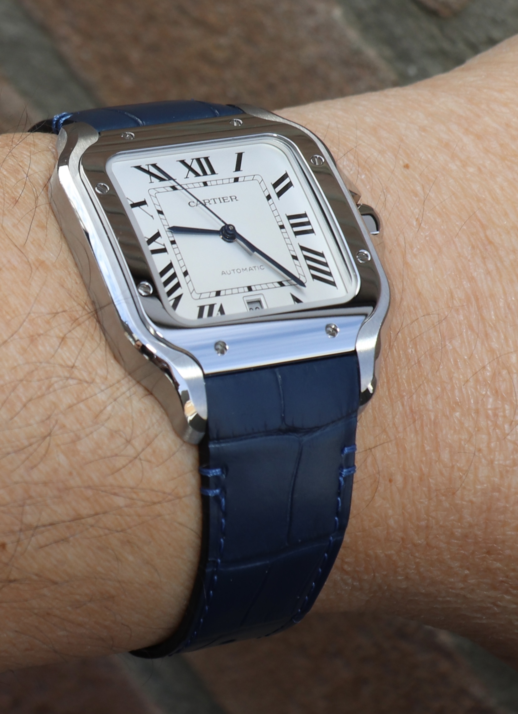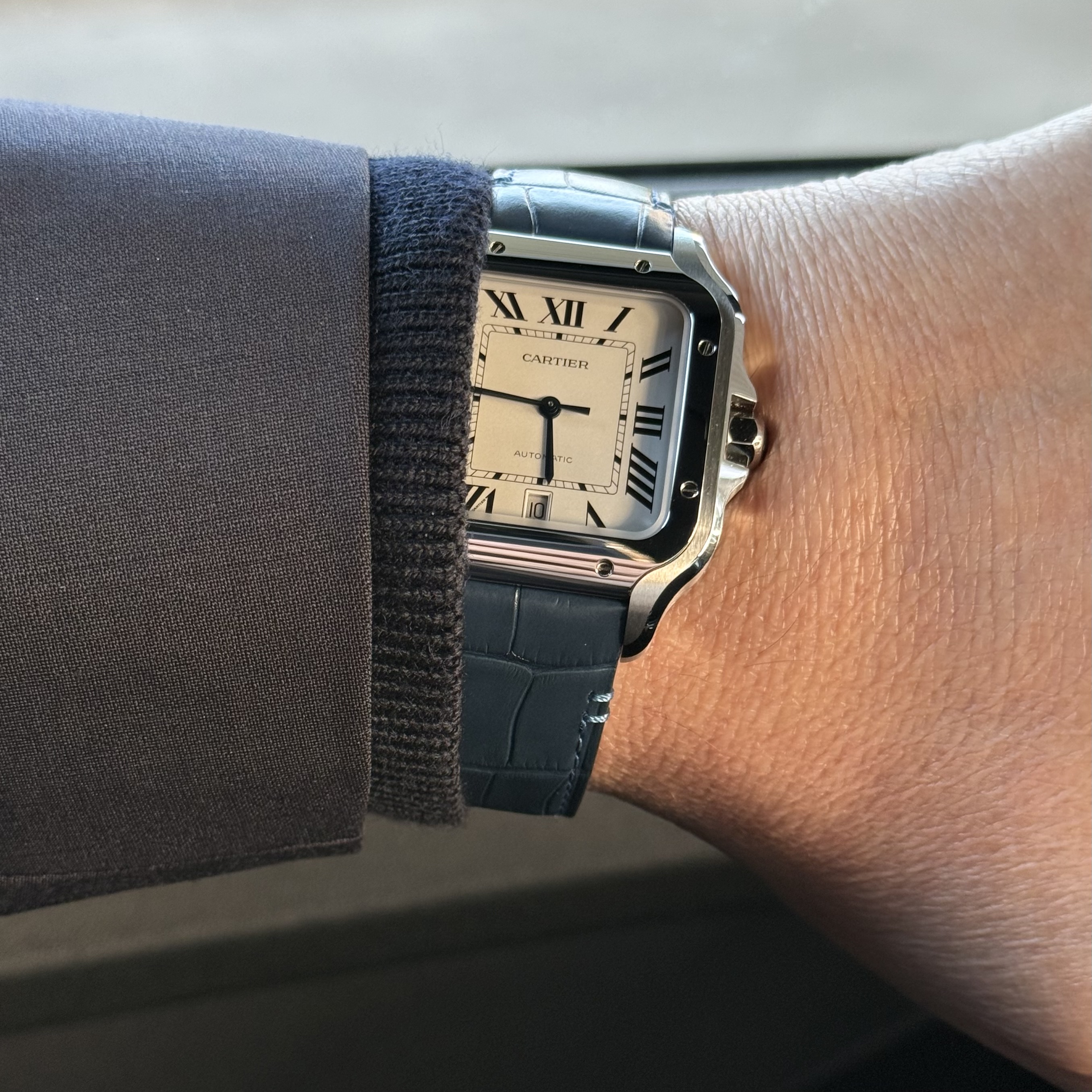Mooie materiaal en matte kleurstelling. Ik mis wel het constraterende van de bezel en de kast. Ik zou voor een medium gaan, ondanks dat die geen datum heeft, wat ik wel een erg fijne complicatie vindt.