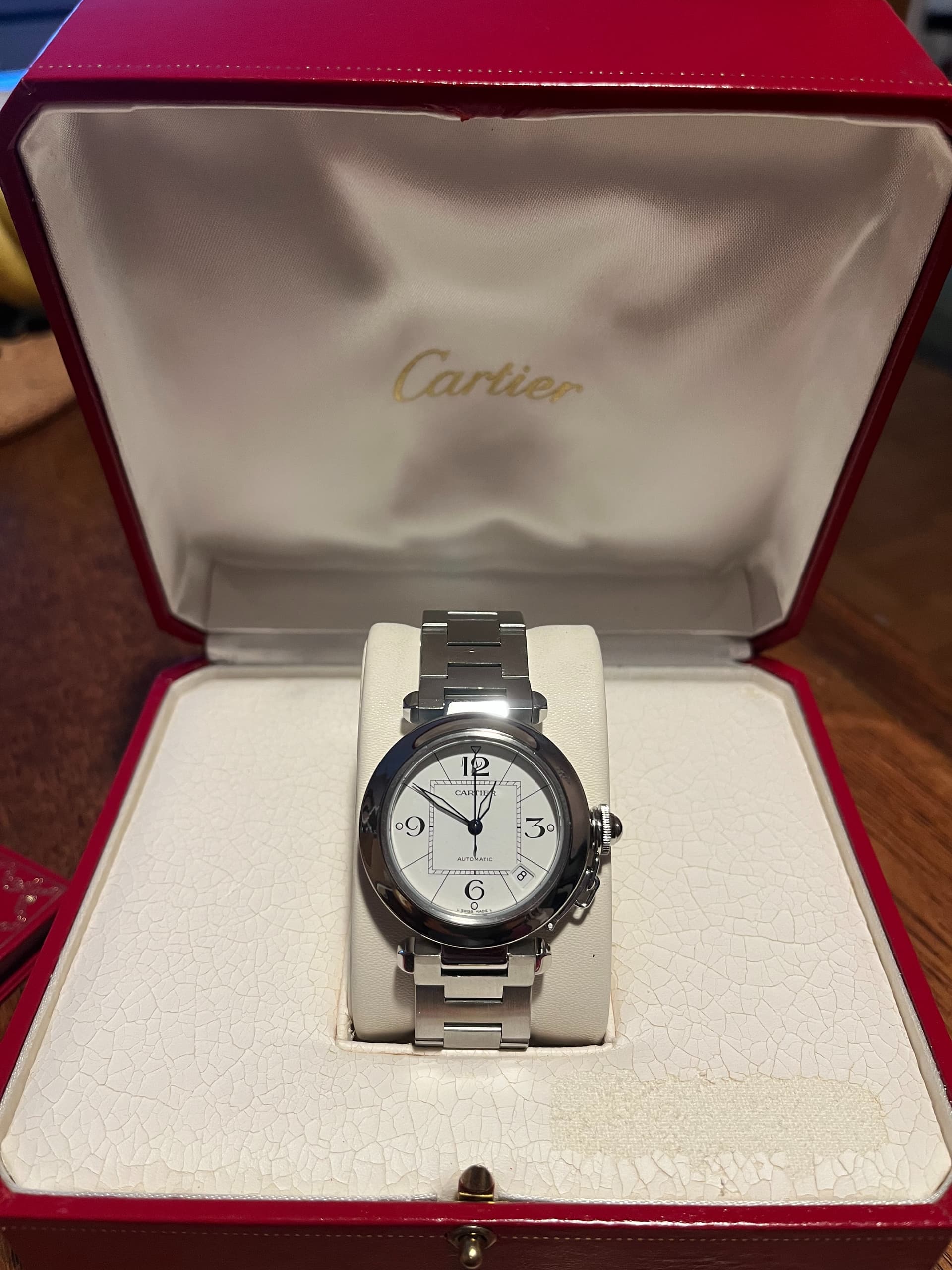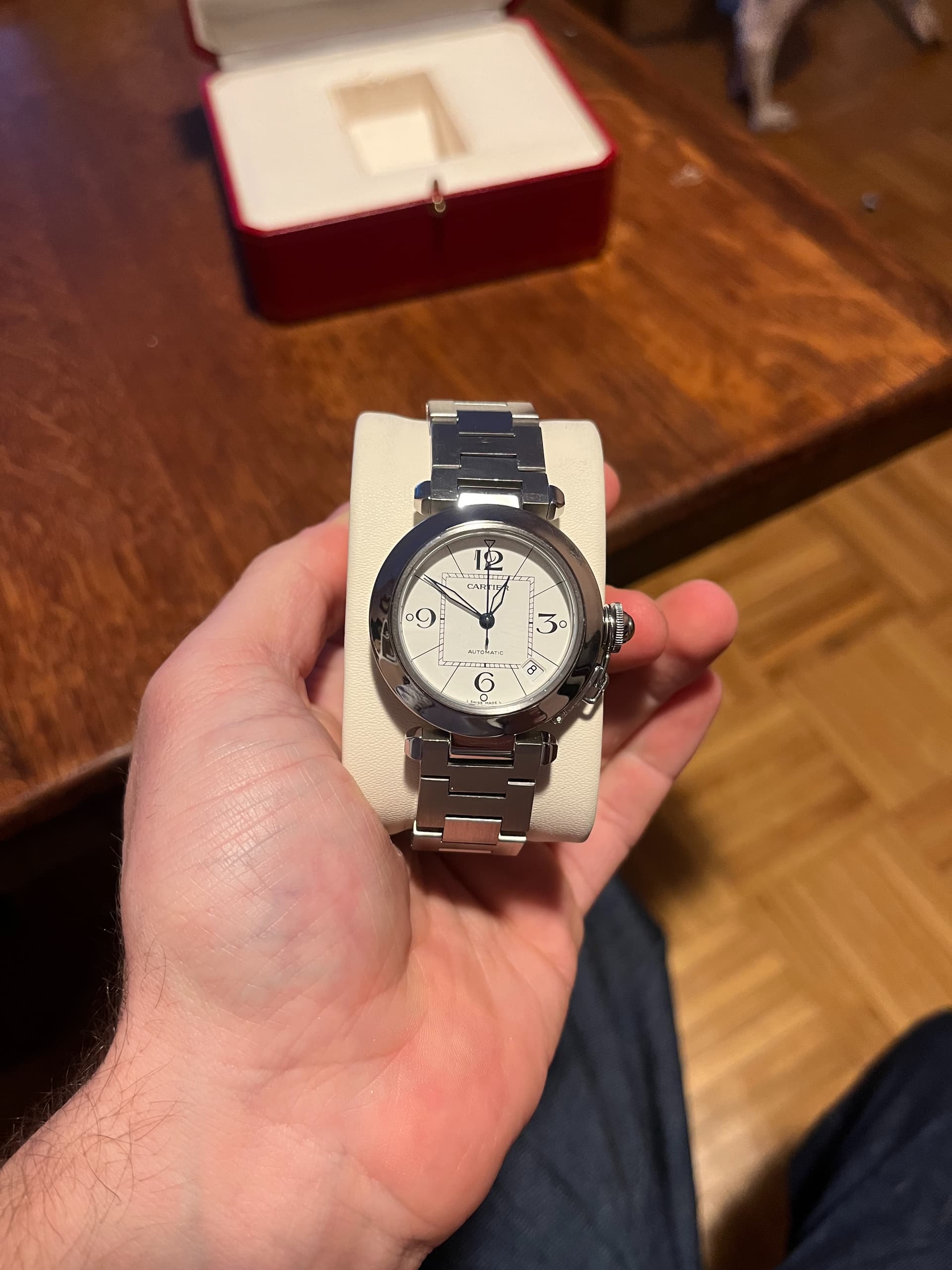 Conditie (krassen, werking etc):Suuupernette staat, net volledig onder handen genomen door een officieel Cartier service center (rekening aanwezig). Heeft oa volledige service, nieuwe wijzerplaat …
