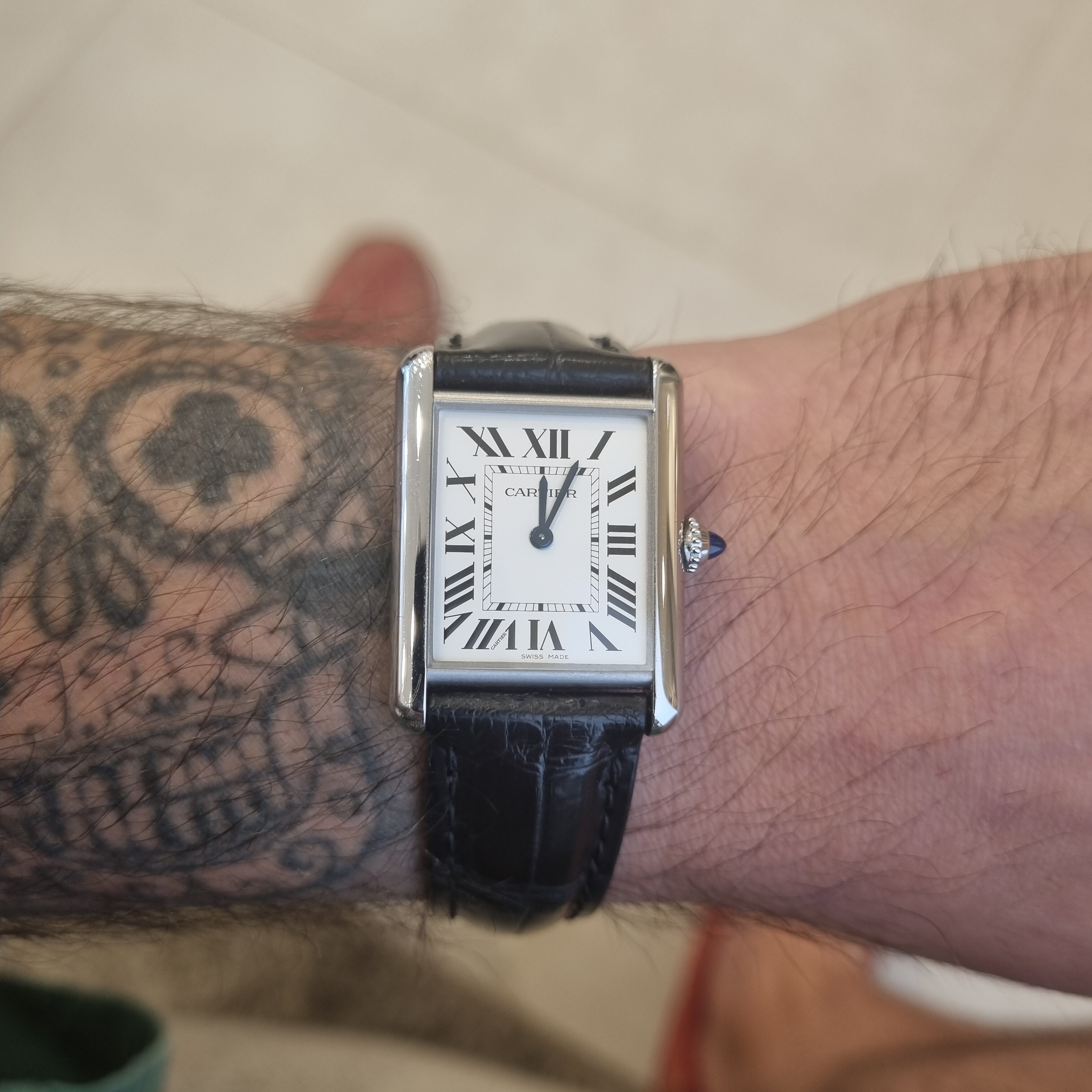 Ik heb zowel een Tank large als de Santos Dumont XL. Draag beiden met evenveel plezier. Zijn 2 iconische modellen, i.t.t. de genoemde Grand Seiko wat een âgewoon rondâ horloge is (wel uiteraard met een hoogwaardige en schitterende afwerking). Santos Dumont large had qua grootte van de kast ook gekund echter is de lugmaat dan slechts 16mm. Dat oogt wel heel erg iel. Is waarschijnlijk ook de reden waarom de Tank large, ondanks het kleine formaat, toch nog wel wat body heeft gezien zijn lugmaat van ook 19mm.