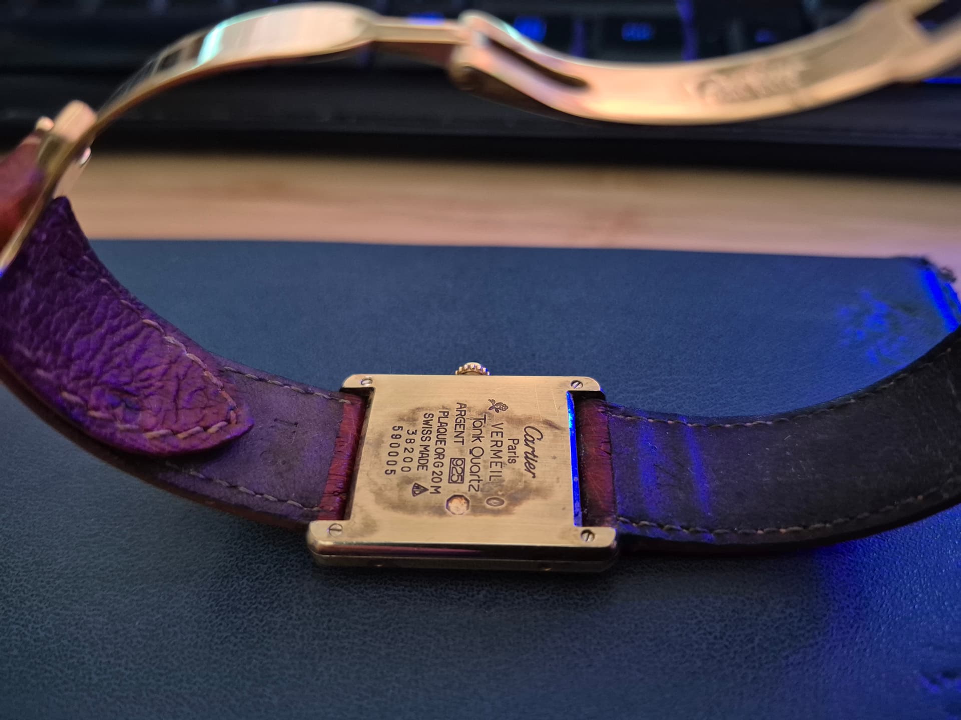 Klopt niet, deze kast wordt ultrasoon gereinigd en daarna met een zilverdoek even opgewreven. Cartier laat de kasten niet vergulden maar verkoopt een nieuwe kast