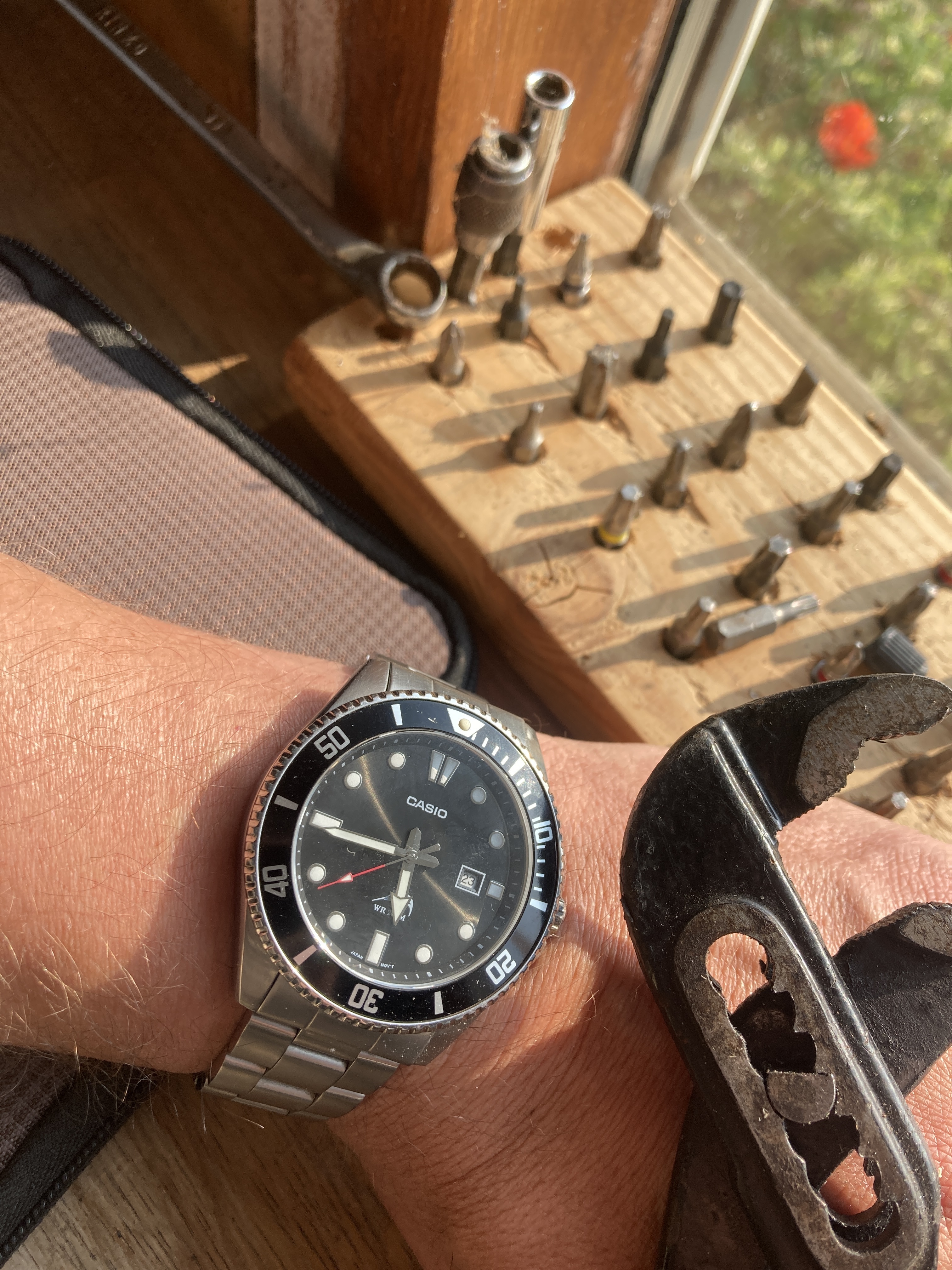 Mijn Duro, beetje gemod (andere band en saffier erin) maar het klus horloge bij uitstek!