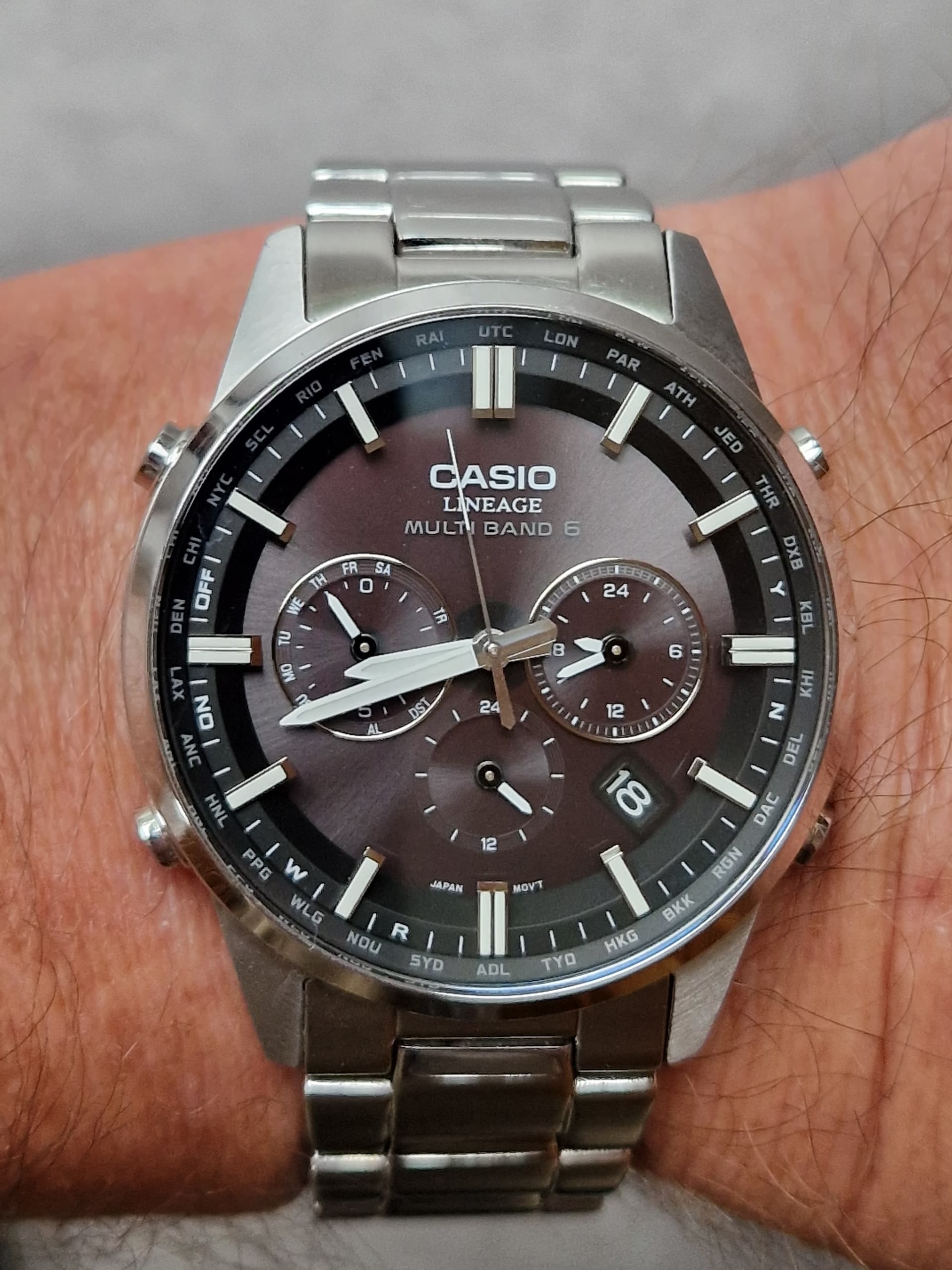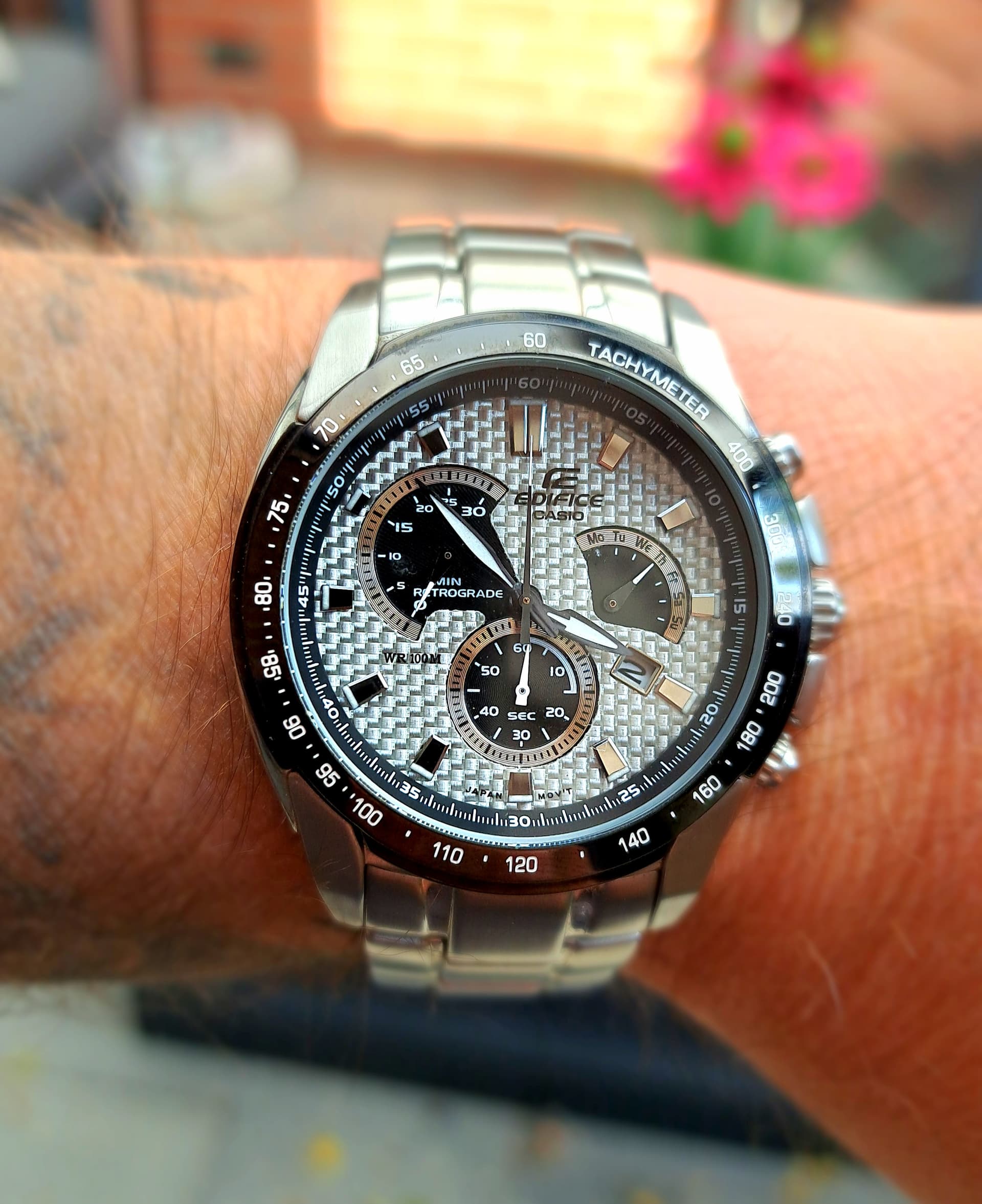 Rond de 43 mm, door de (semi) geïntegreerde strap en korte lugs draagt het kleiner. Ook het zeer lichte gewicht draagt hieraan bij. Comfortabel met een prima pasvorm en is voorzien van een bomb proof Miyota quartz uurwerk. De timing-bezel is draaibaar. Leuk detail is dat ze ook door NASA gebruikt worden. Heeft nu een leuke korting: Casio MRW-200H-2B2VEF - horloge met datum en dag - Kish.nl Valt me op dat deze MRW’s steeds duurder worden, ik heb mijn exemplaar nog voor onder de 30 euro kunnen bemachtigen. Dus grijp uw kans! ![]()