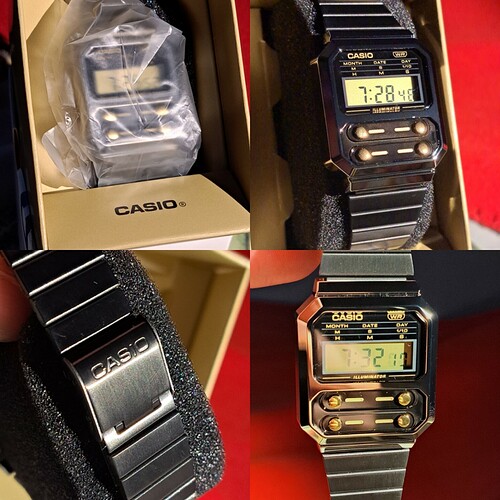De pret van m’n gebruikte Casio was helaas van korte duur, het horloge bleek defect te zijn. Wel netjes mijn geld terug gekregen van de verkopende partij, dus op zoek gegaan naar een andere Casio als toolwatch voor in de tuin en schuur. Het is een A100WEGG-1A2EF (Gunmetal Grey) geworden.