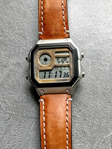 Gisteren wat geëxperimenteerd, post-apocalyptisch gethematiseerde Casio Royale gemaakt. Horloge was licht beschadigd aan de kast, goed excuus om eens los te gaan.