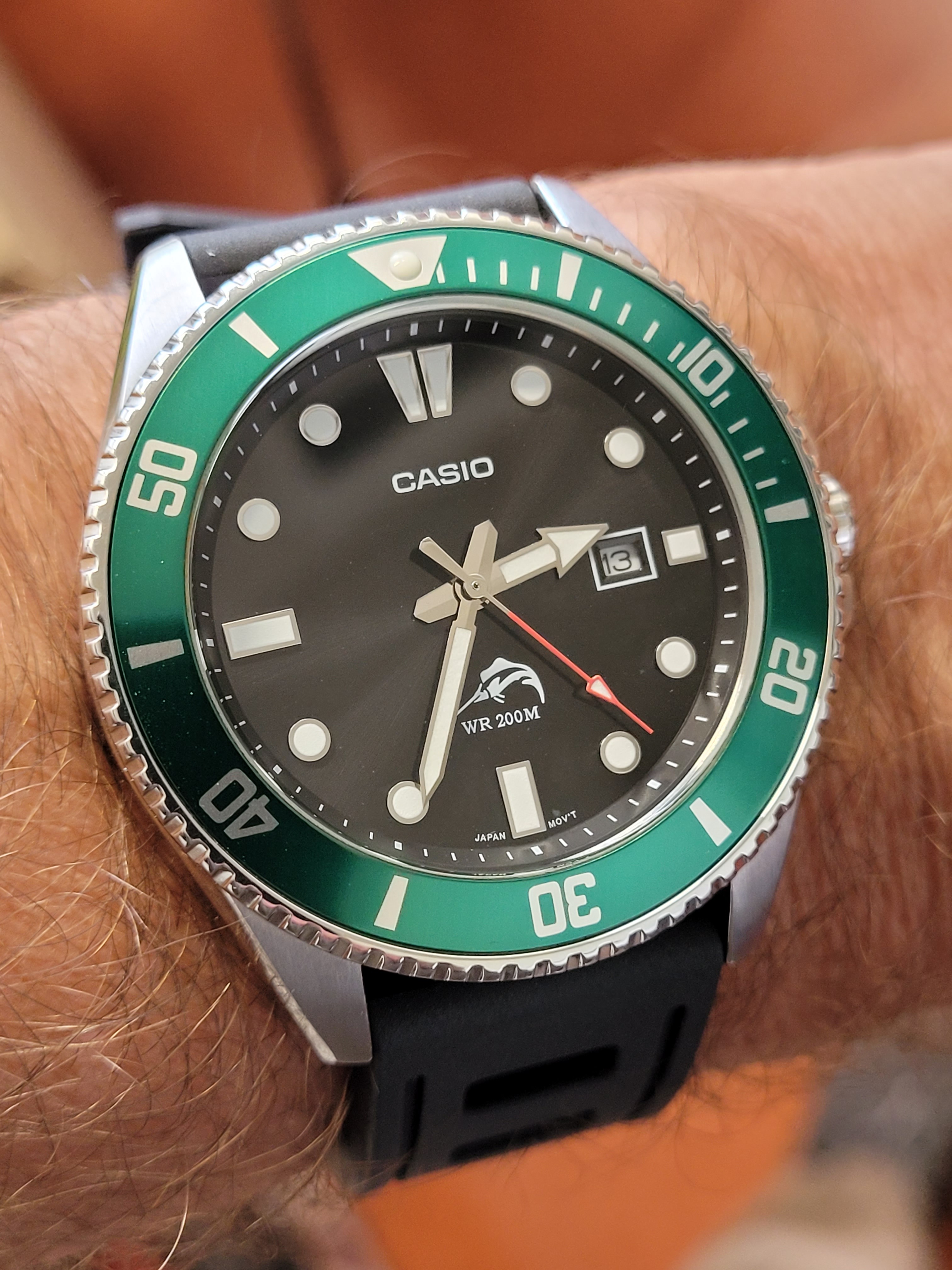 Cool, ik heb exact dezelfde, echt een heel toffe mooie en solide duiker. Alleen het bandje is nogal matig (stug). De 106 met Marlin is enkel nog in de VS te koop. Casio schijnt de licentie verlopen te hebben of zoiets en daarom is ie weg bij de 107, heel jammer.
