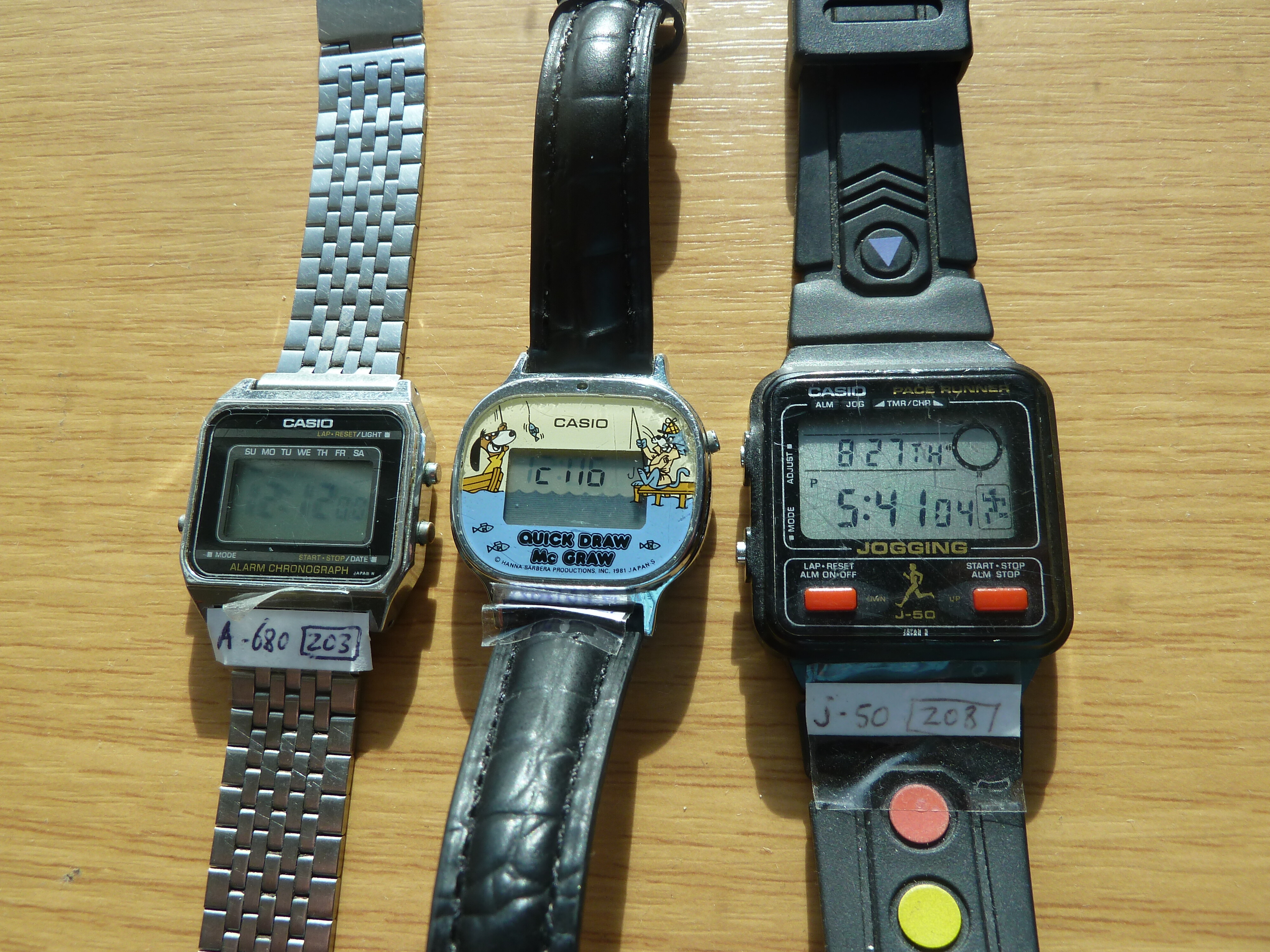 @Valentijn: dat valt heel erg mee. De horloges staan in een Casio vitrinekast op een standaard, de meeste niet origineel en vastgemaakt met een elastiek (die vaak broos wordt en breekt)
