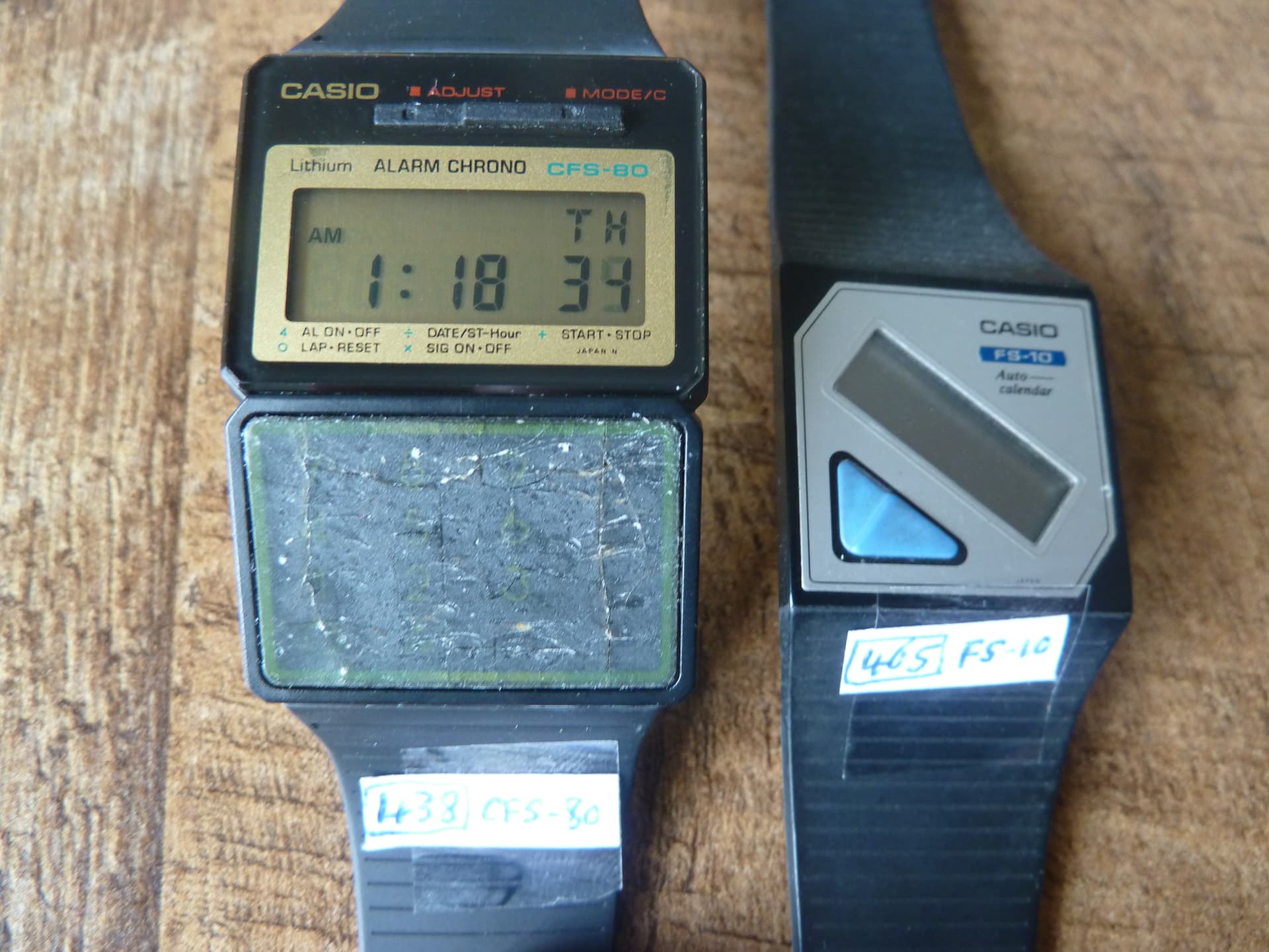 Hierbij nog een paar horloges uit de 400-serie. 4 ervan zijn zeer plat, zogenaamde “film watches” waaronder het dunste calculator horloge. Het toetsenpaneel is verouderd/versleten/verstaft en hierdoor is het horloge helaas niet bruikbaar meer hoewel het nog wel werkt.