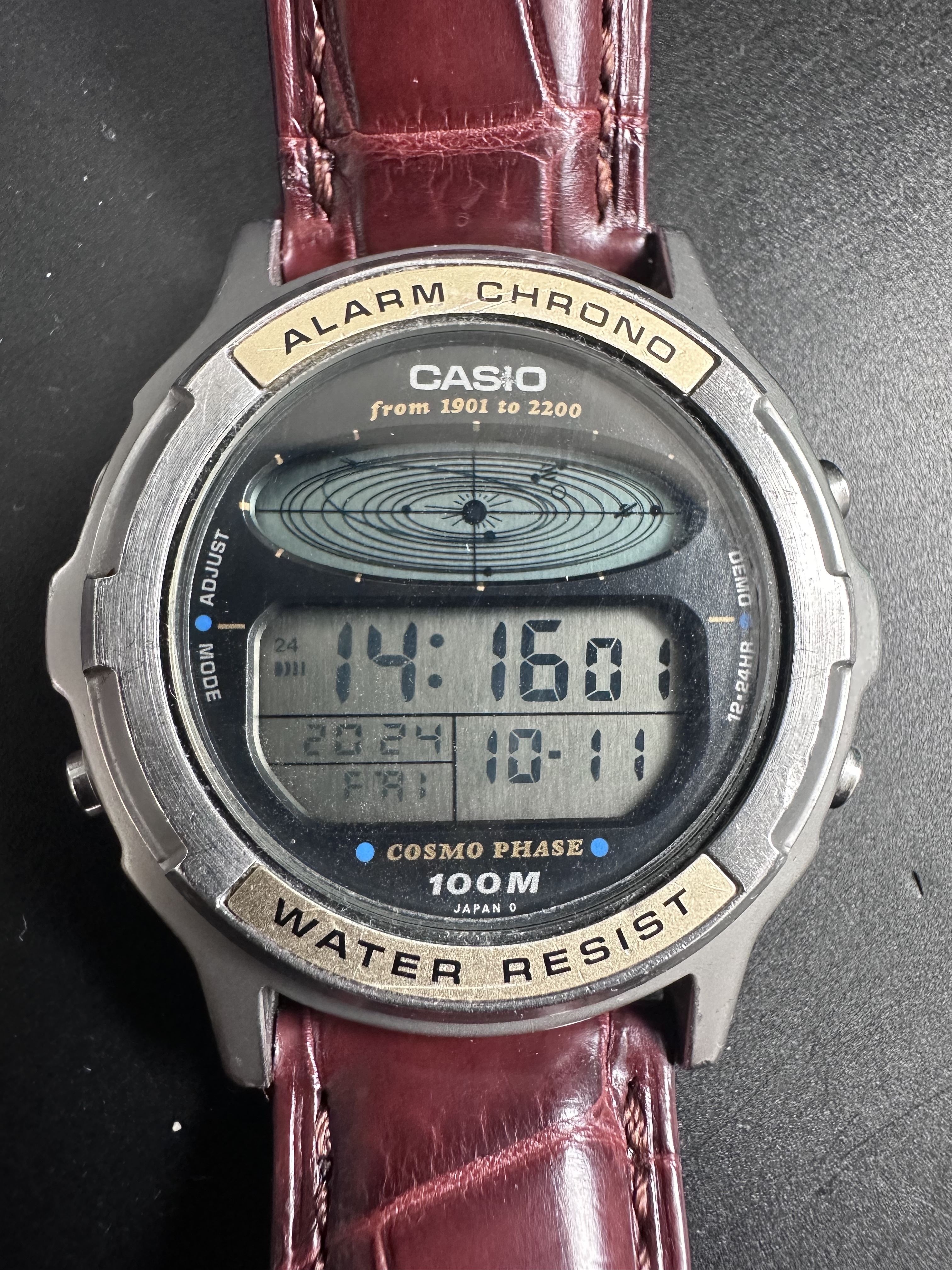 Mijn Casio Cosmo Phase. Al sinds groep 8 van de basisschool in mijn bezit (ben nu 42 jaartjes oud). Een bijzondere Casio uit de jaren 80 die redelijk zeldzaam is.