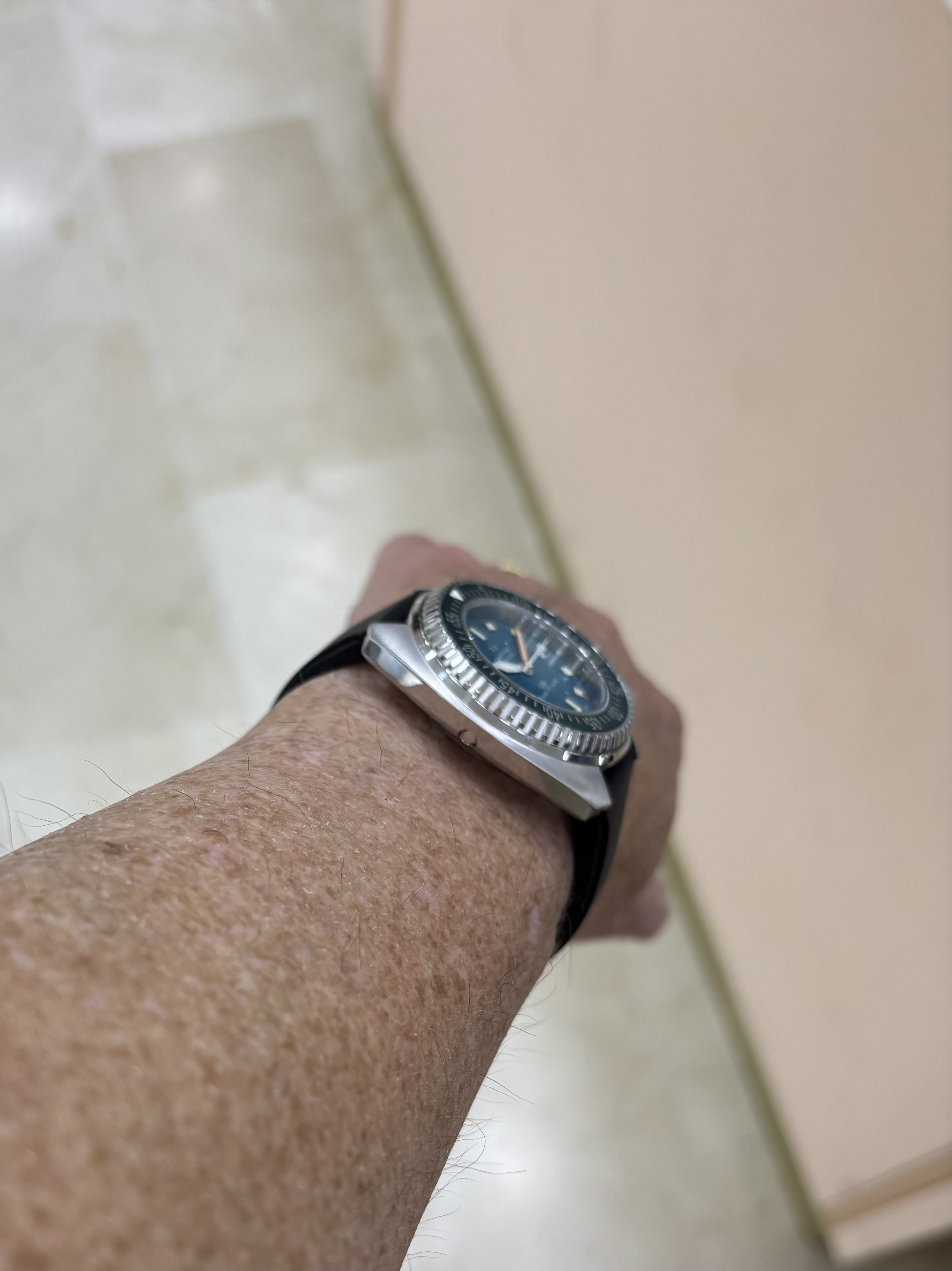 Deze is echt iconisch,heb de opvolger geprobeerd maar die ligt duidelijk anders op de pols doordat ze de dikte van het horloge onder de lugs hebben gestopt waardoor deze los op de pols ligt,zonde