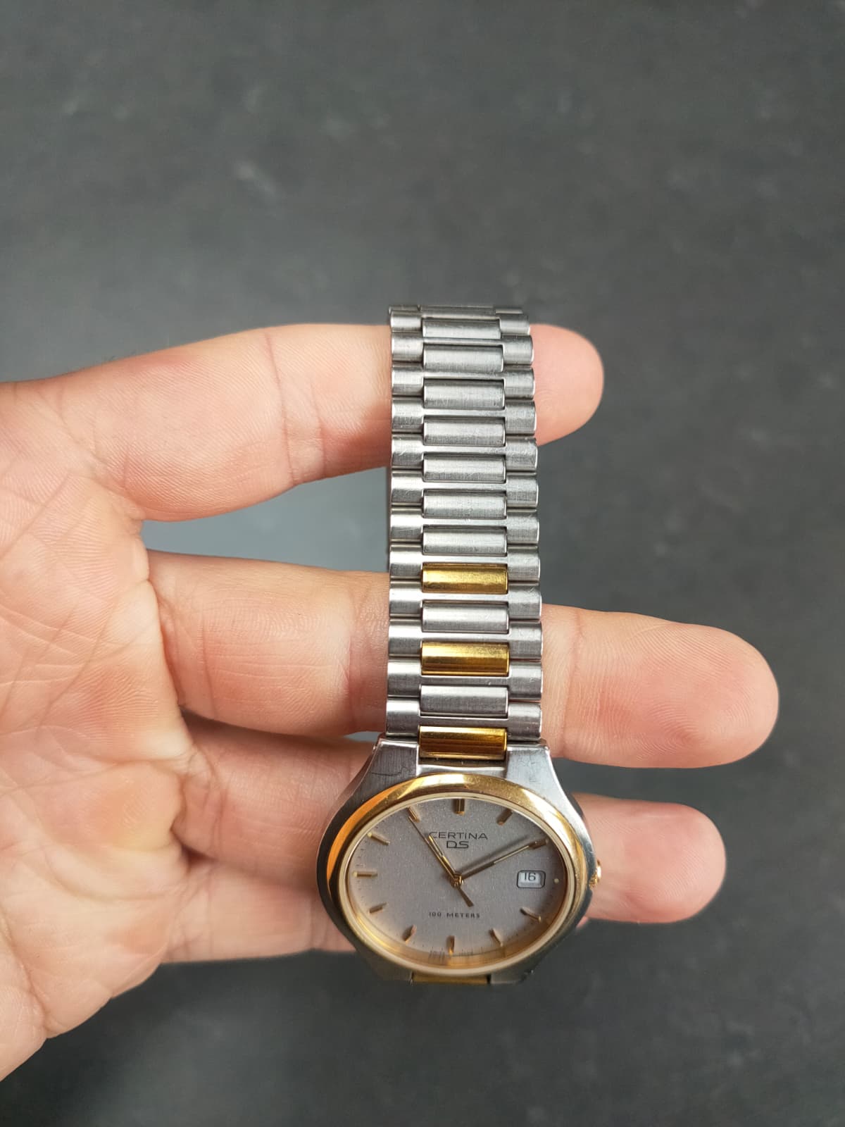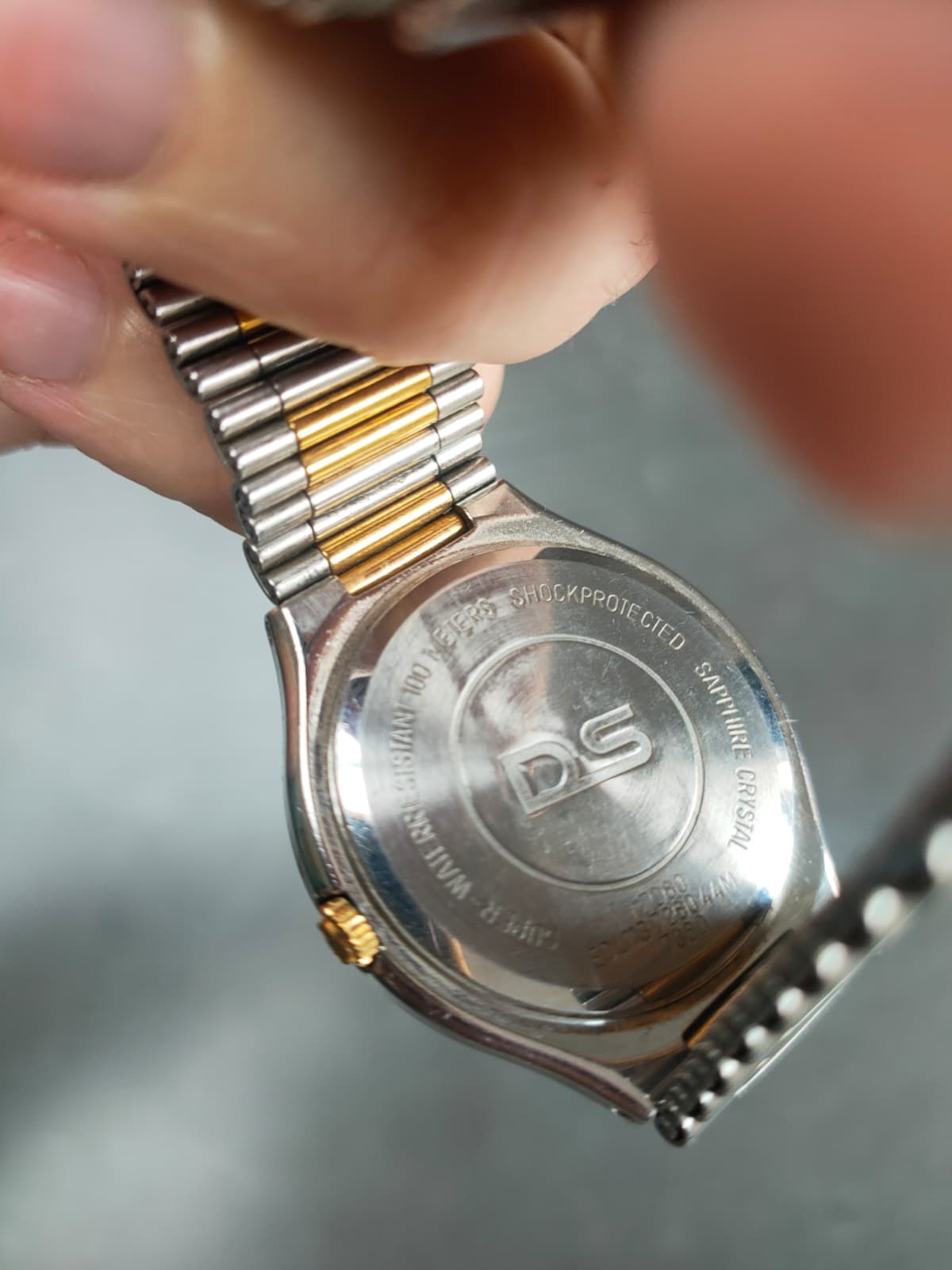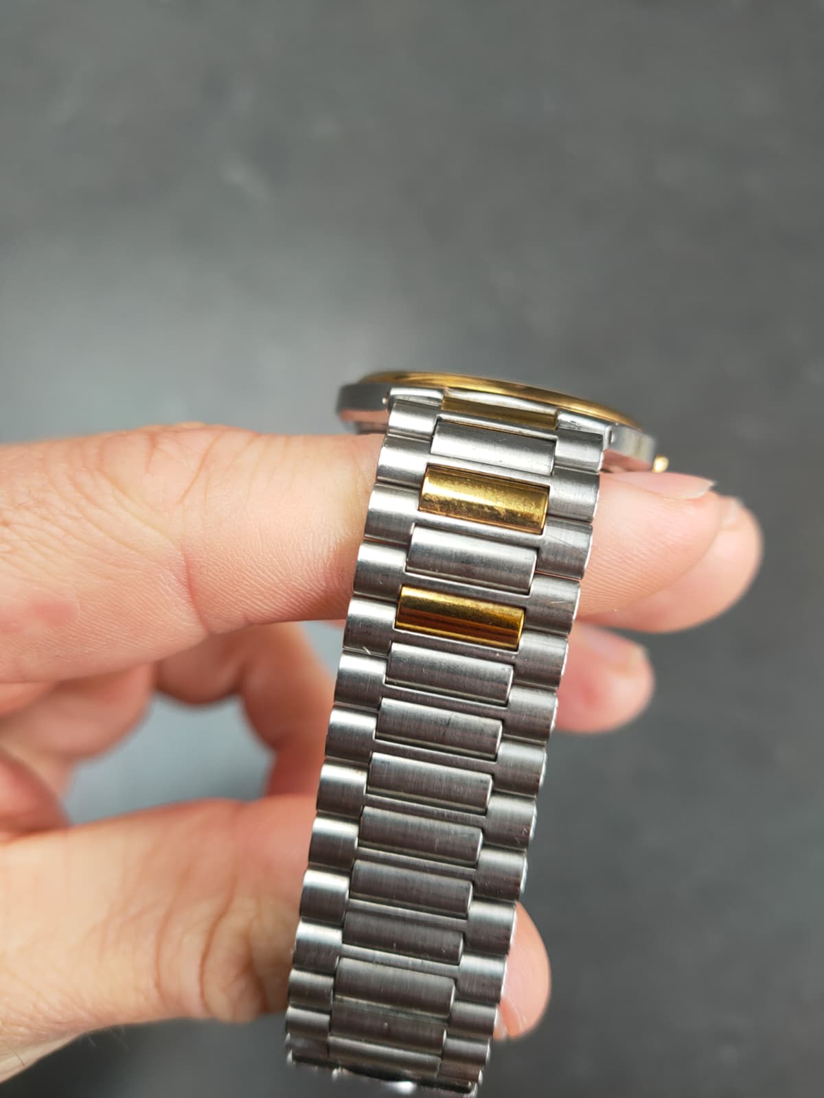 Conditie (krassen, werking etc): Super goed voor de leeftijd, goudkleur niet afgebladderd en loopt mooi. Glaasje ook mooi schoon! Heeft zo’n super coole stretch-clasp! Dus die groeit automatisch mee! (Niet de bracelet, alleen de clasp.