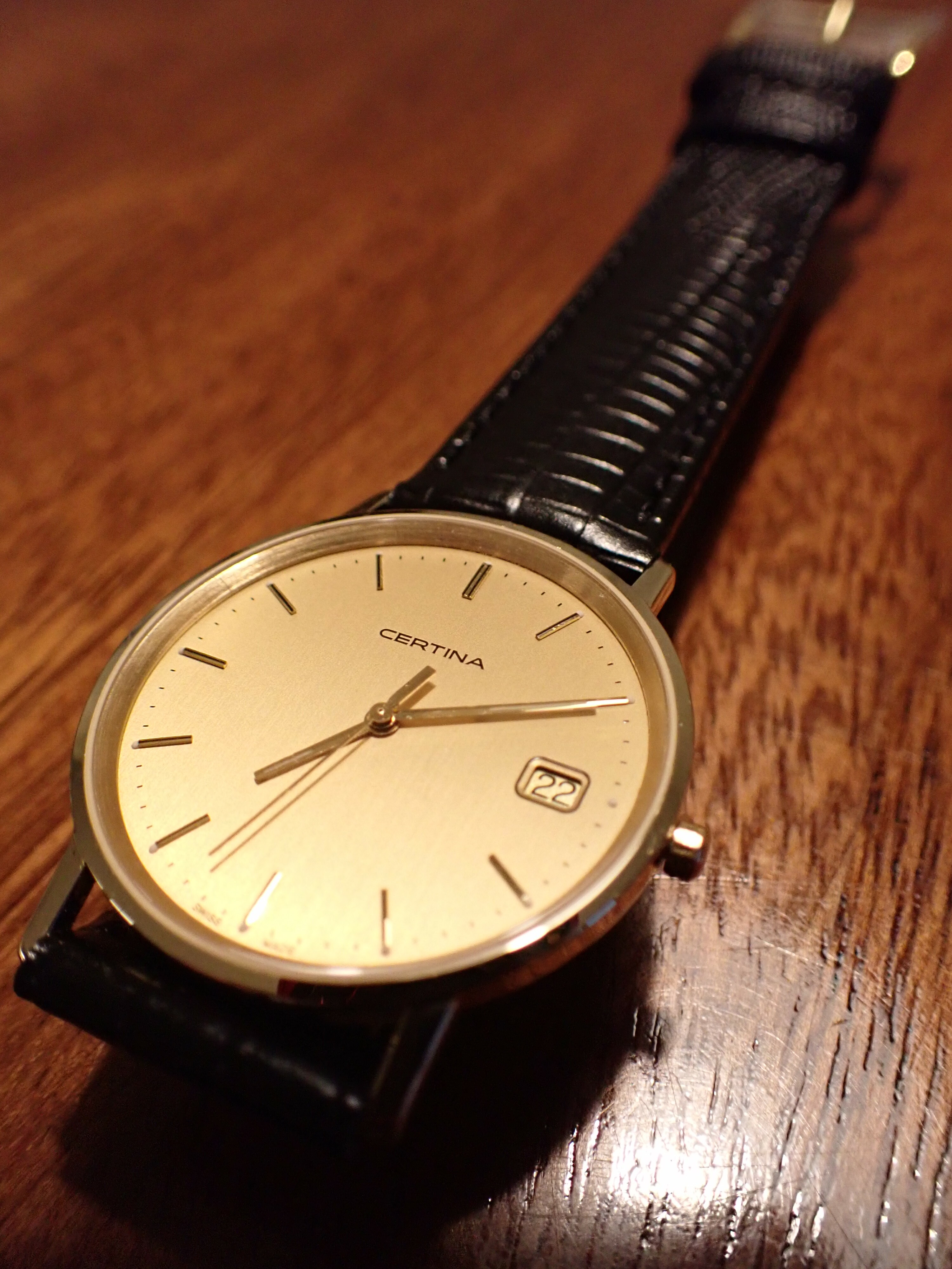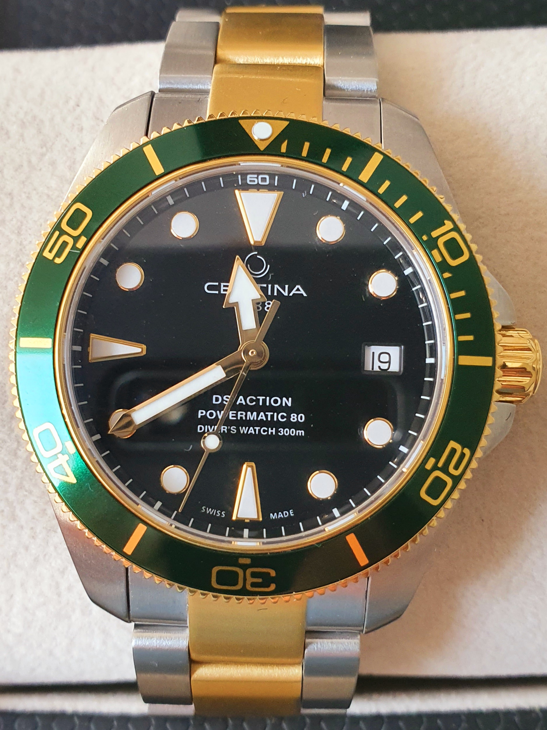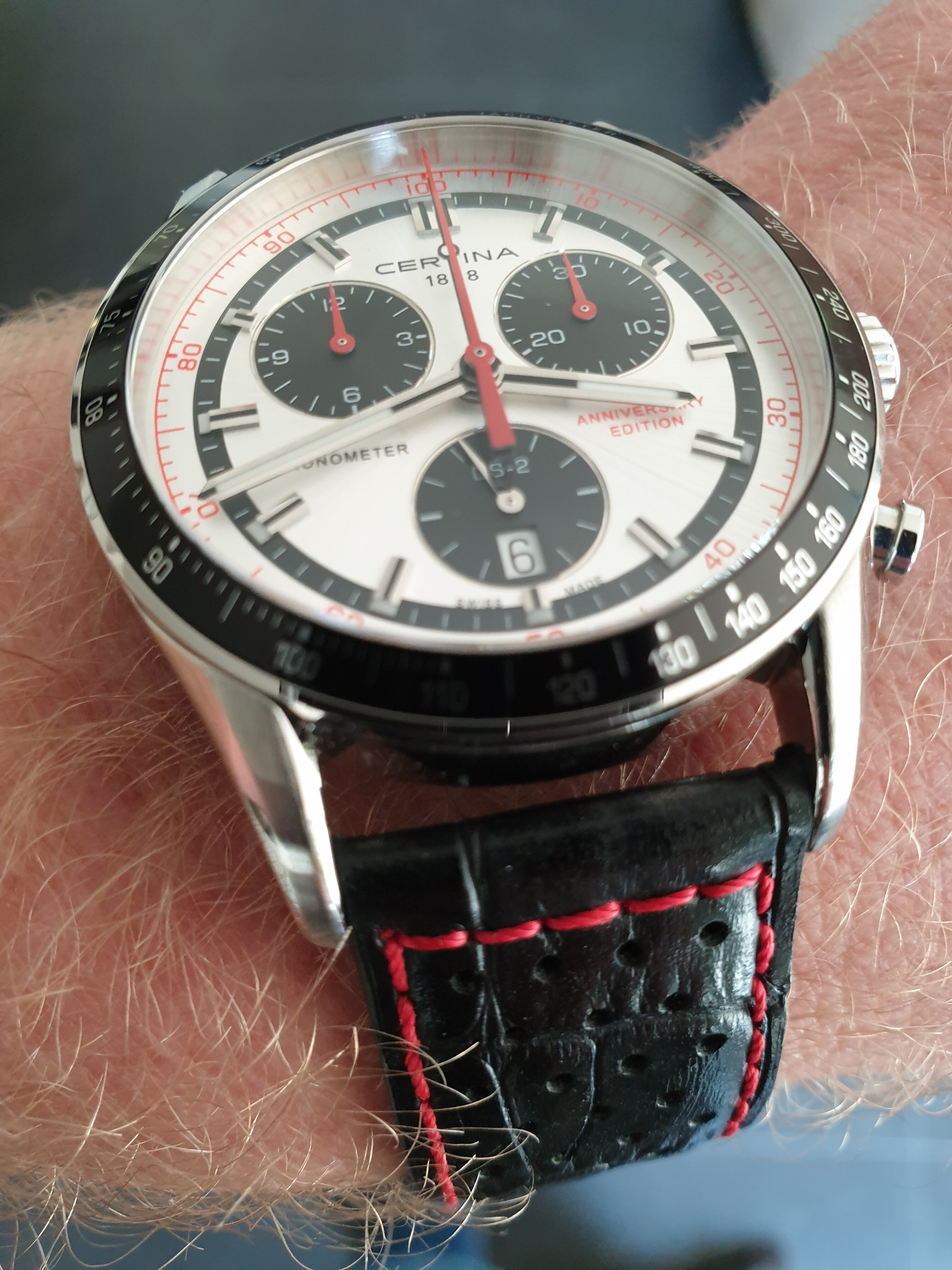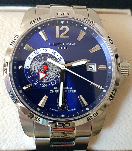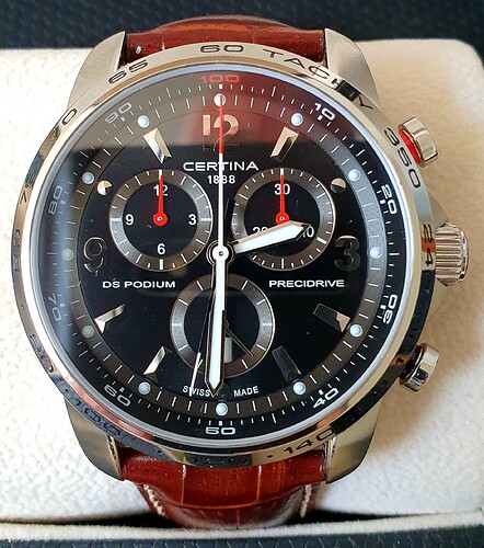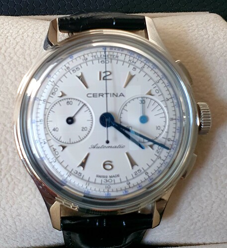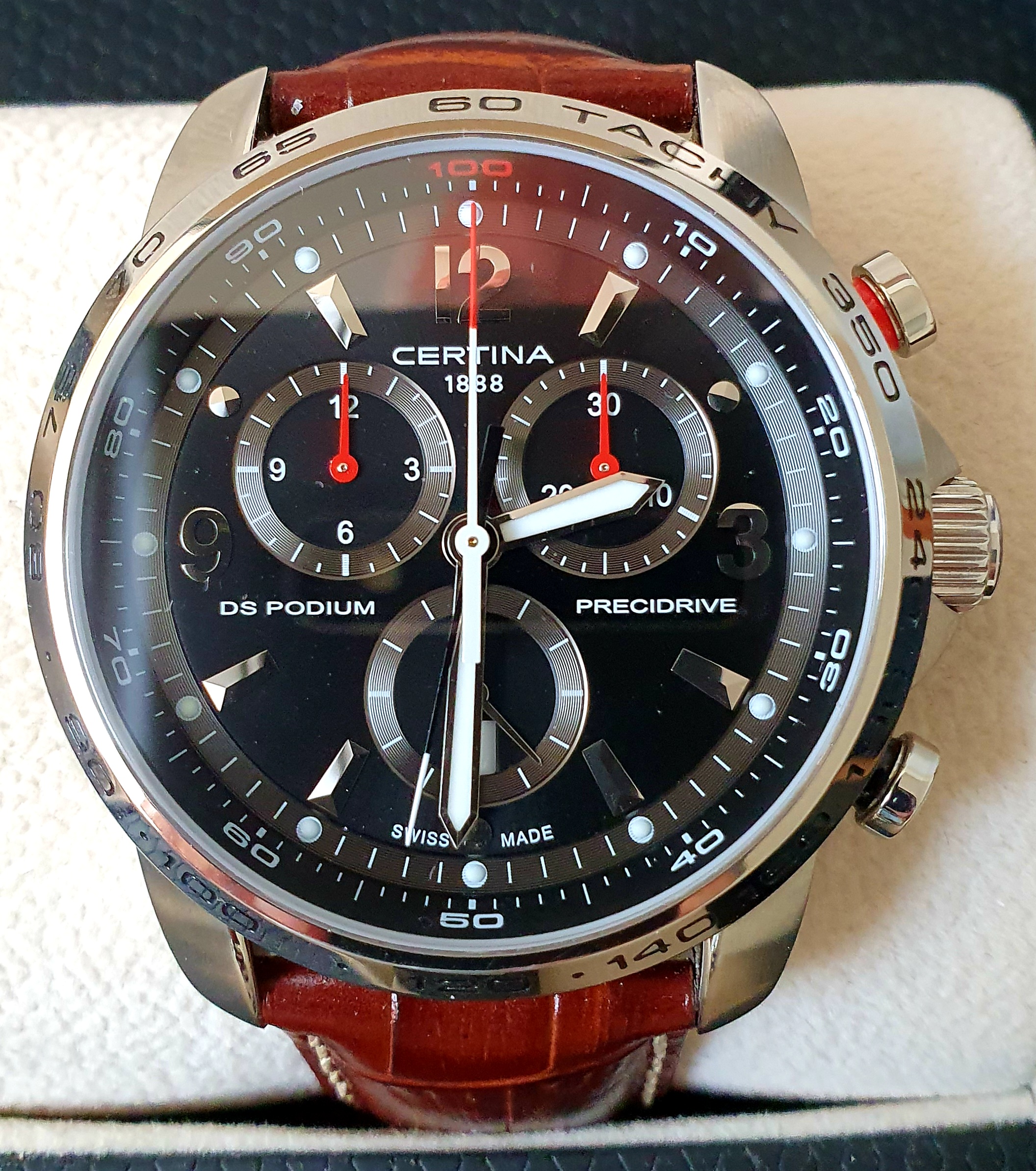 het bandje is niet meer origineel, het zou een zwart leren bandje moeten zijn met Certina gesp.