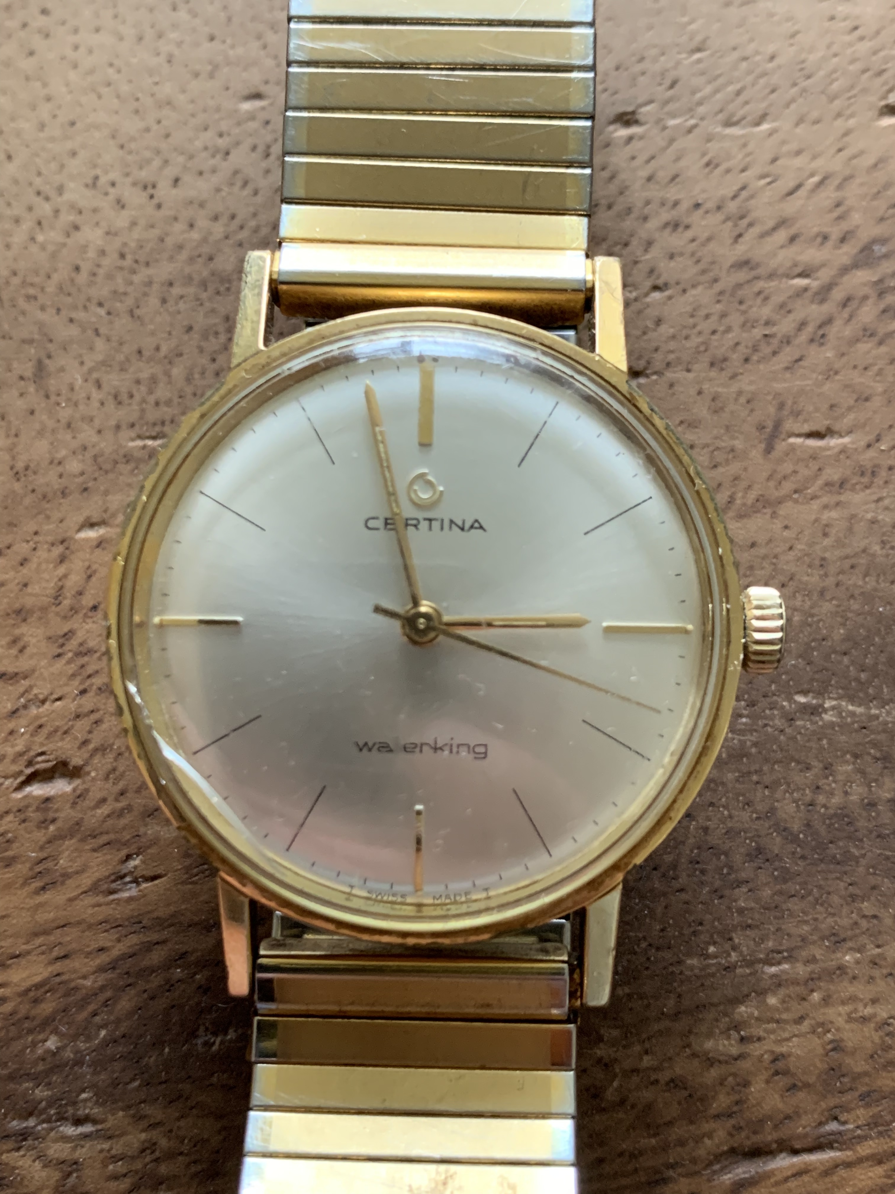 De band is een verschrikkelijke harentrekker. Uiteraard niet origineel. Naar het schijnt zat er ooit een zwart lederen bandje op met een goudkleurige doornsluiting. Als iemand meer informatie heeft over welke maat en type doornsluiting (met logo?) hoor ik dit ook graag.