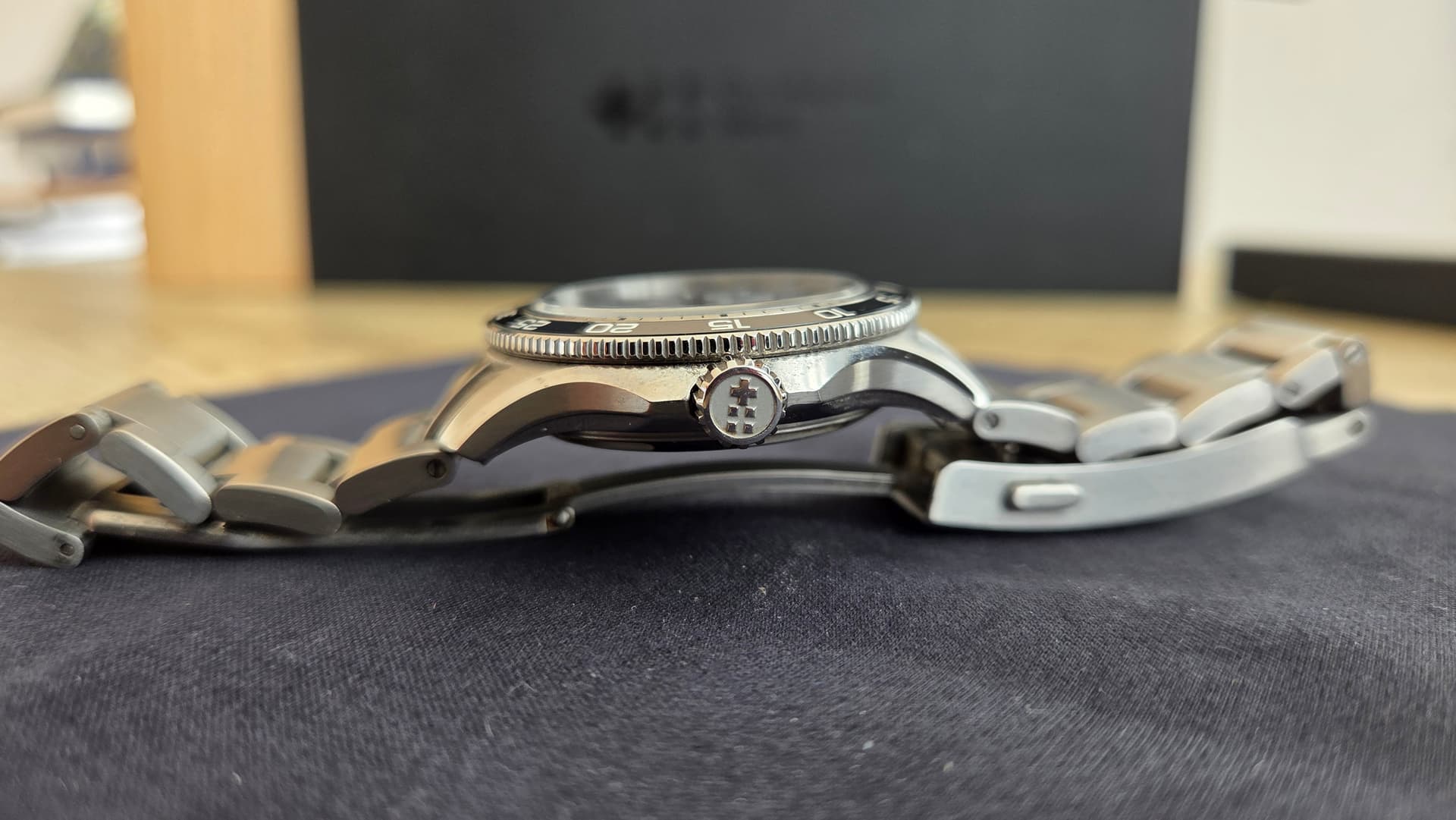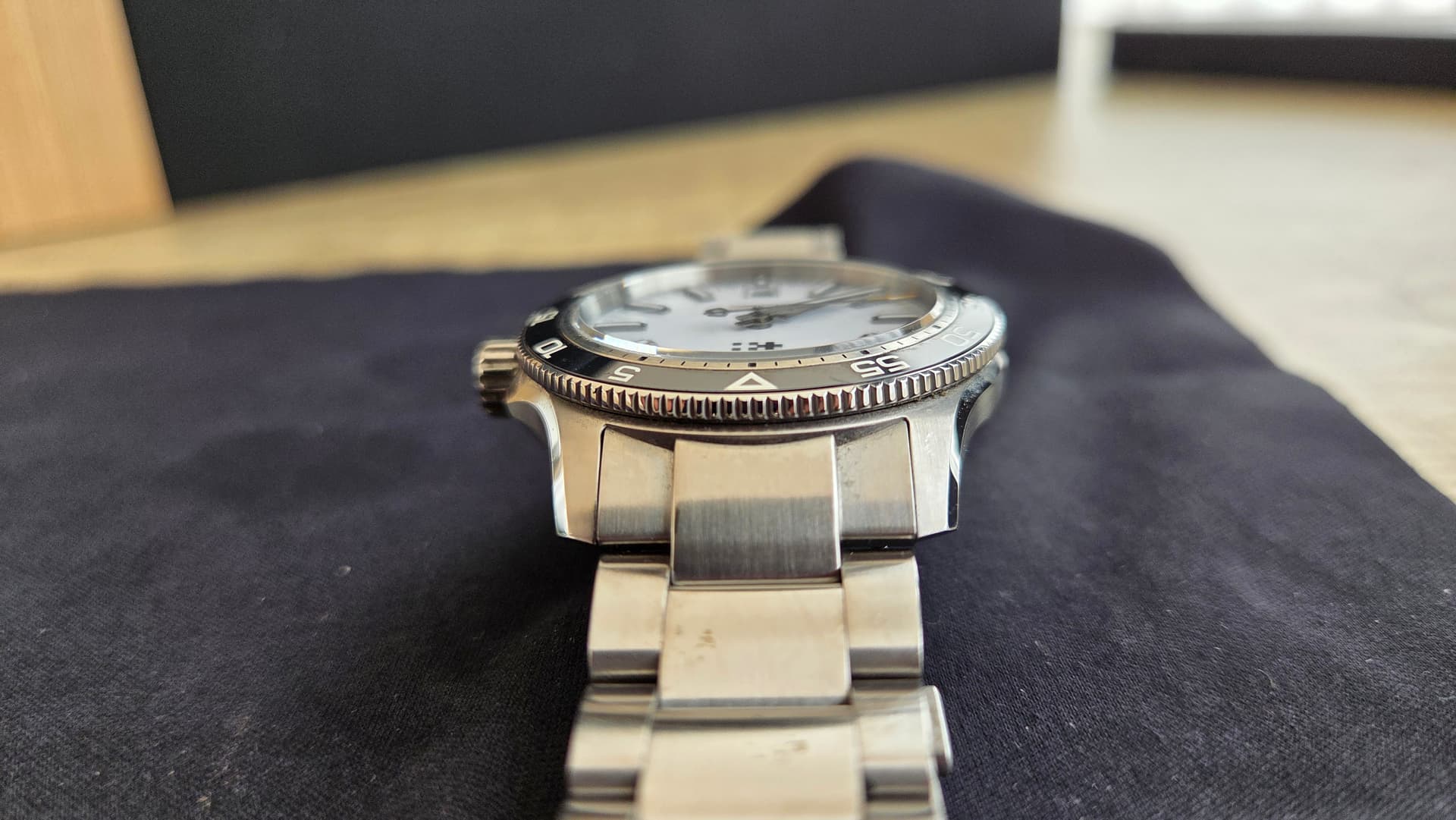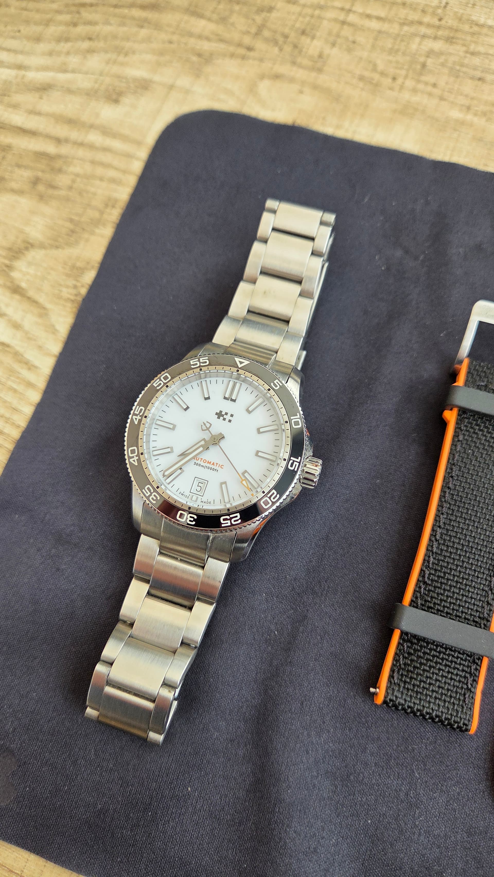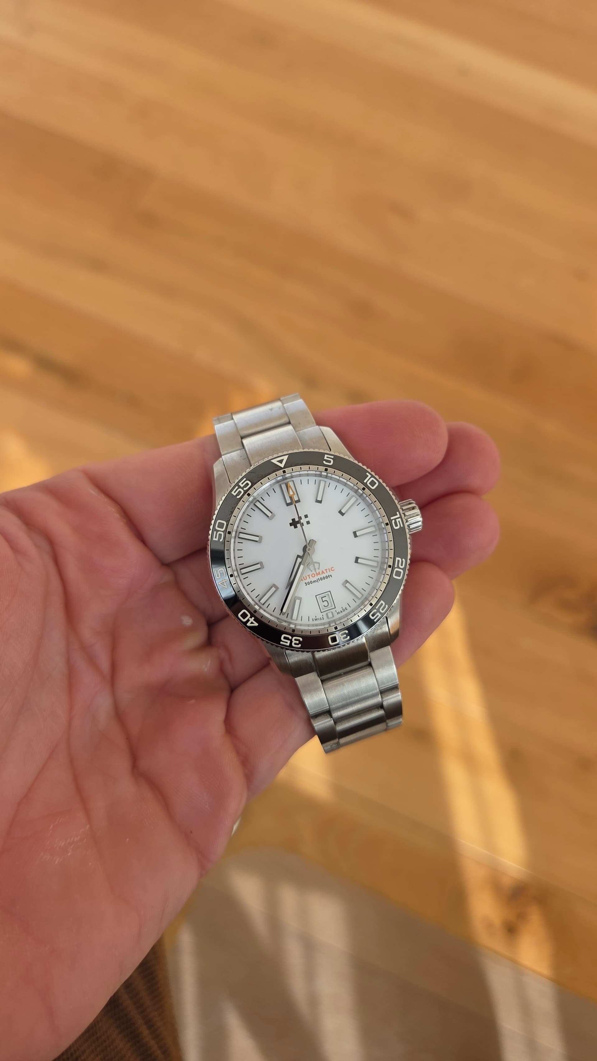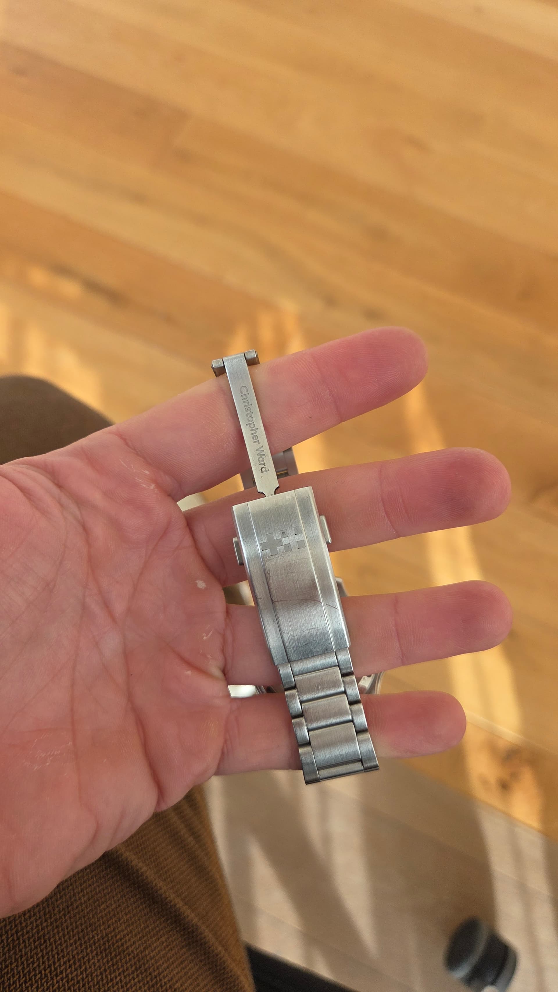 Conditie (krassen, werking etc): Horloge is in roulatie van 3 gedragen, daardoor echt wel swirls op band en sluiting. Kast is in perfecte staat.