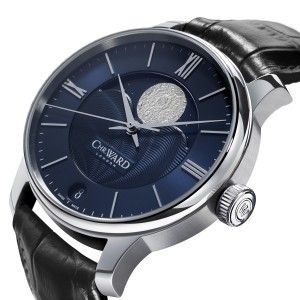 Ik doe een duit in het zakje voor de Chr. Ward. Ten eerste vind ik de case size met 40mm beter dan die van de FC, en ten tweede vind ik dat de complicatie best zo groot mag zijn. Als ik een moonphase zou kopen, zou ik dat vooral doen vanwege het schattige maantje. En dan vind ik een mooi grote, zilveren 3D maan leuker dan zo’n lullig stipje op een kleine subdial.
