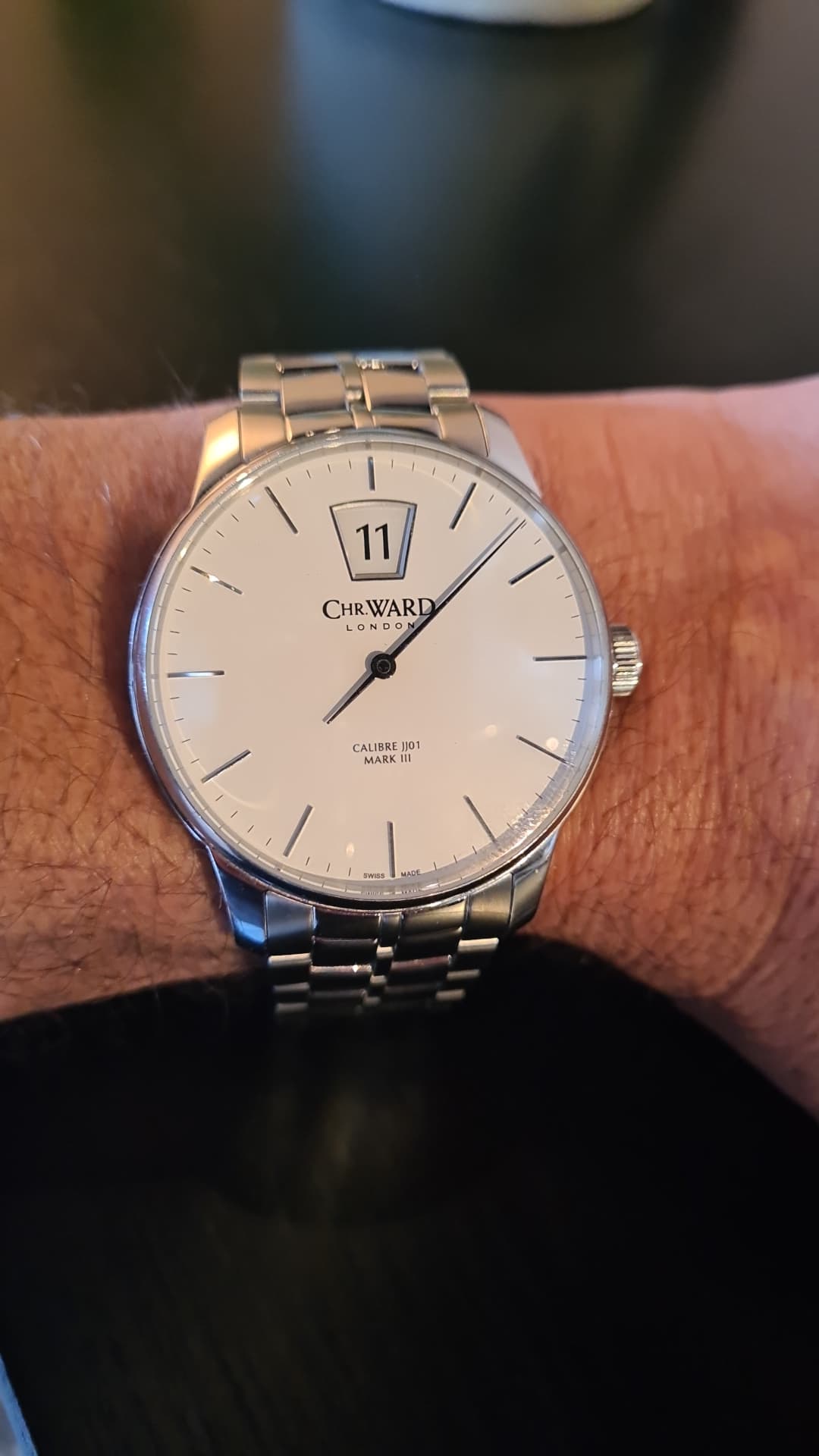 Ik vind hem wel mooi, maar dan wel op de ledere band, op de stalen band is hij voor mij iets te “grijs”.