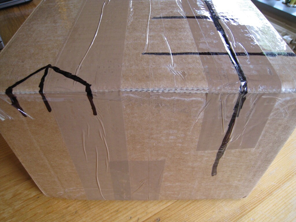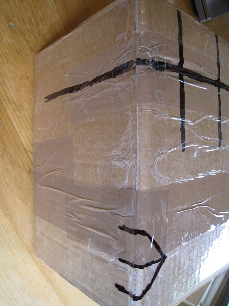 Dit is wat ik doe als ik iets verstuur; markeer alle openingen van de verpakking met een marker (in dit geval zwart maar ik doe dit ook met 2 kleuren) en dan nog een keer blanke tape er overheen, foto’s naar ontvanger sturen. Als ze fout willen zullen ze er heus wel wat op verzinnen maar openen en dichtmaken zodat alle markeringen goed zitten, zal niet zo makkelijk zijn. En ik ben mij ervan bewust dat als een ontvanger de boel belazerd, dit ook niet helpt.
