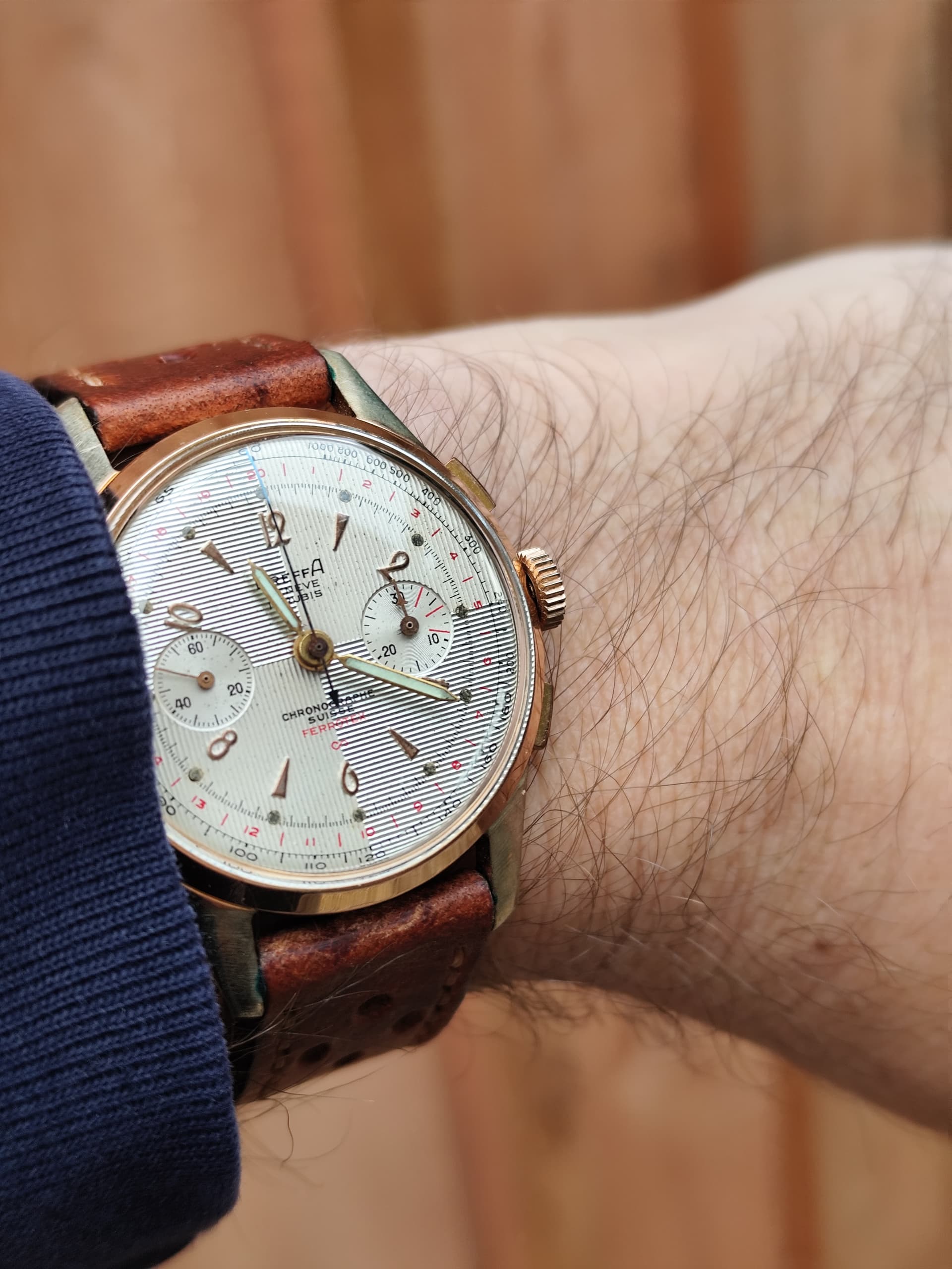 Dat is een echte Lemania, dat zou ik toch echt niet scharen onder chronographe suisse. Graadje hoger wat mij betreft.