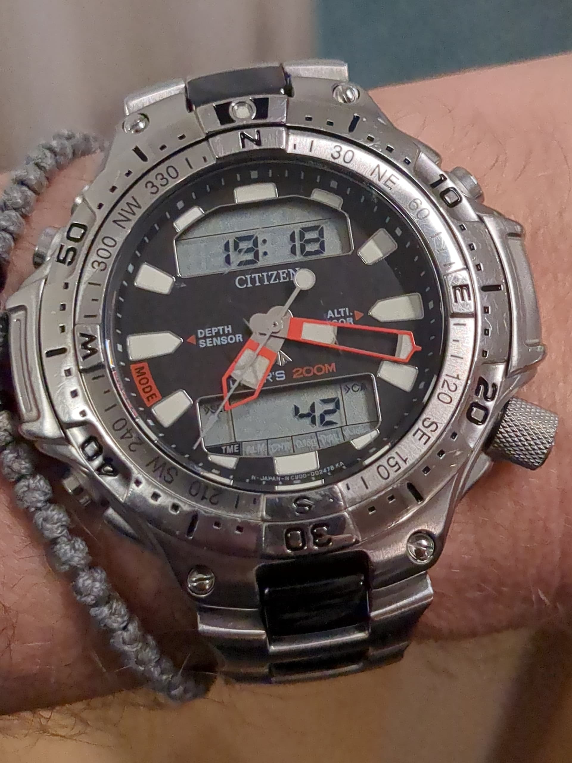 Ja, een JDM only uit 2009/2010 en lastig te vinden, volgens wat ik via een zoekactie vond. Eco-drive, weinig tekst op de wijzerplaat en de vibe van zowel de vroege 150m automaten als de crystron quartz modellen. Met 43mm (zonder kroon) en 47mm L2L net niet te groot voor mijn kleine pols.