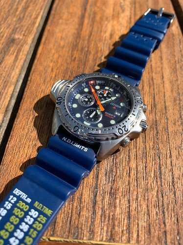 Mooi vintage model! Heb zelf de chrono en heb de versleten zwarte rubberband vervangen door een blauwe. Staat ‘m goed!