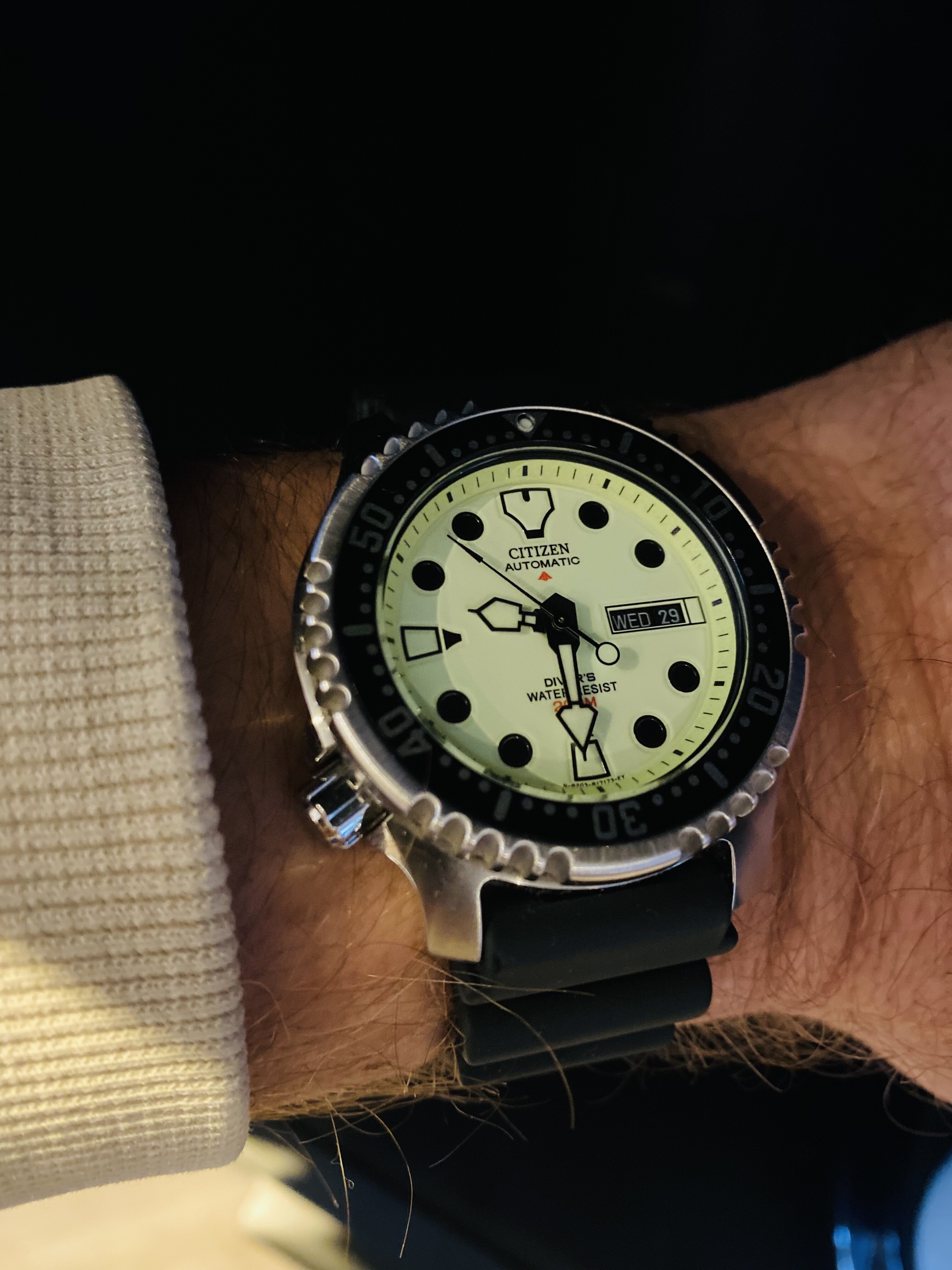 Ik heb het broertje van de NK0000-10A in Hong Kong besteld. De NK0002-14W met de groene wijzerplaat.