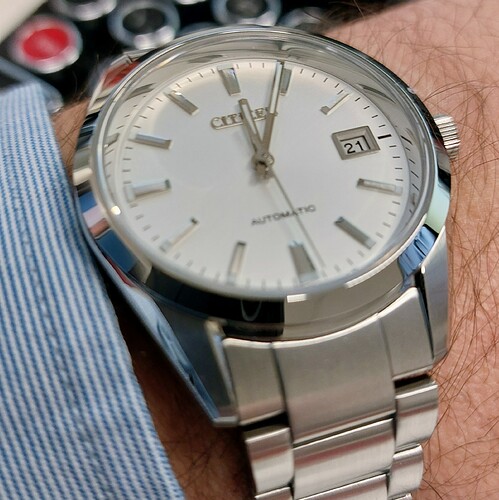 Dit juweeltje is JDM-only uit de Citizen Collection met referentie NB1050-59A. Mijn ‘beste’ horloge in mijn collectie. Duratect coating en saffier antireflectie glas. Met het Citizen 9011 uurwerk, hi-beat met 28.8k bph en 42 uur reserve. Kastdiameter is 38mm, kastdikte is 10.5mm. Op de originele Duratect Platinum stalen bracelet met een milled clasp.