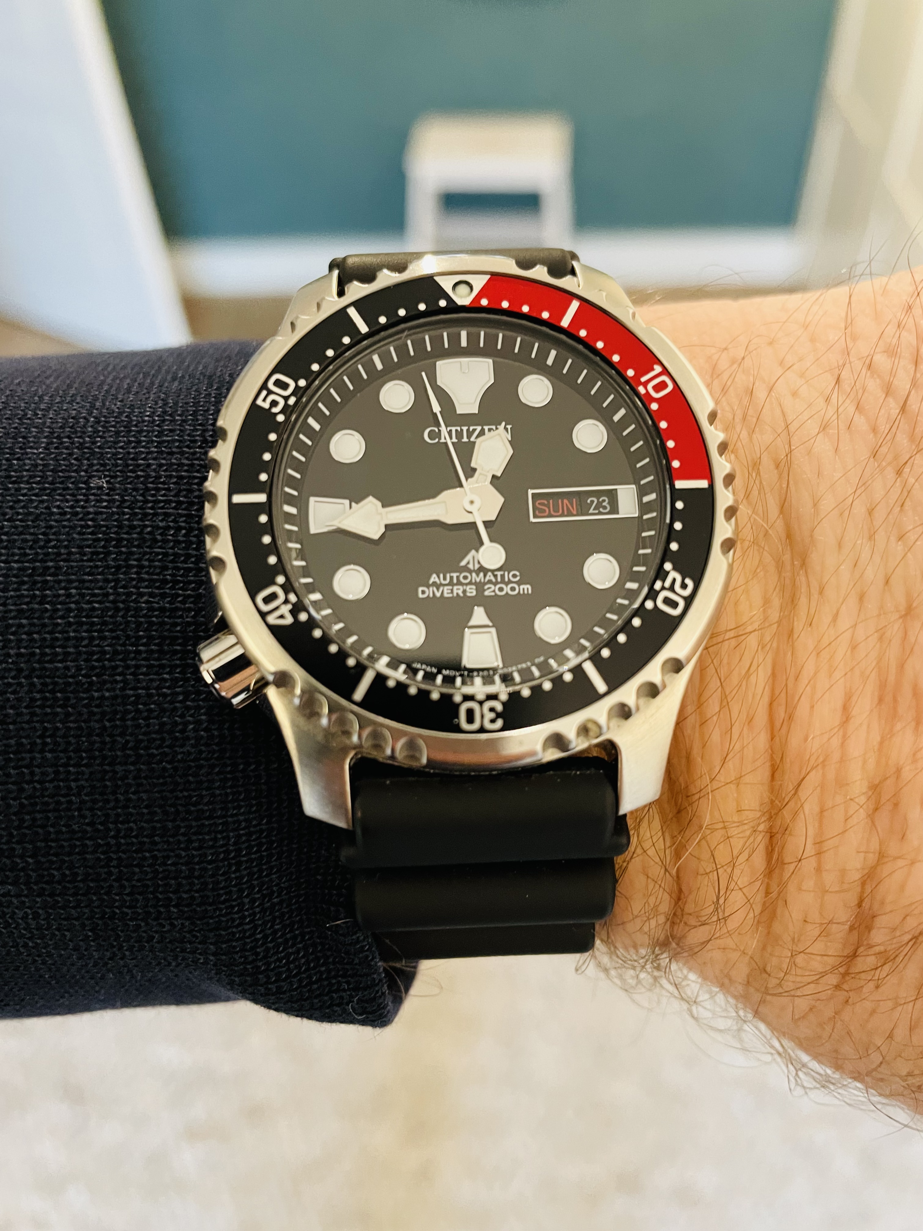 Ik heb daar serieus over nagedacht, want met alarm. Maar het feit dat je voor alle functies, zoals de chrono inschakelen, de kroon moet uittrekken hield mij tegen. In plaats daarvan heb ik de AT8218 aangeschaft. Helaas geen alarm, maar wel een (voor mij) handiger chrono. En een wat modernere wijzerplaat (dat is natuurlijk een kwestie van smaak).