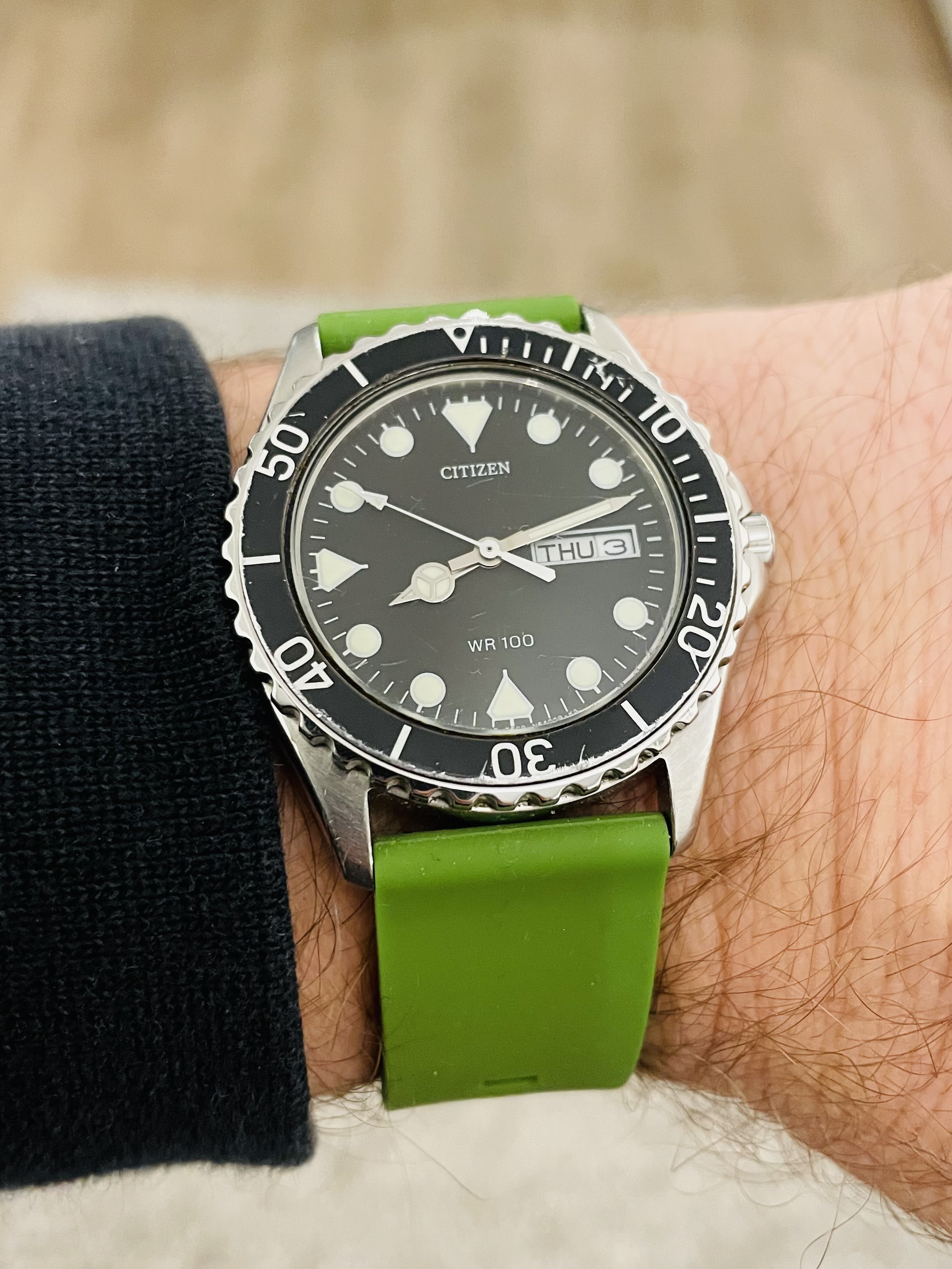 Thanks! De band bevalt uitstekend, het horloge zelf ben ik tot mijn verrassing minder van gecharmeerd. Die staat dan ook in het blauwe.