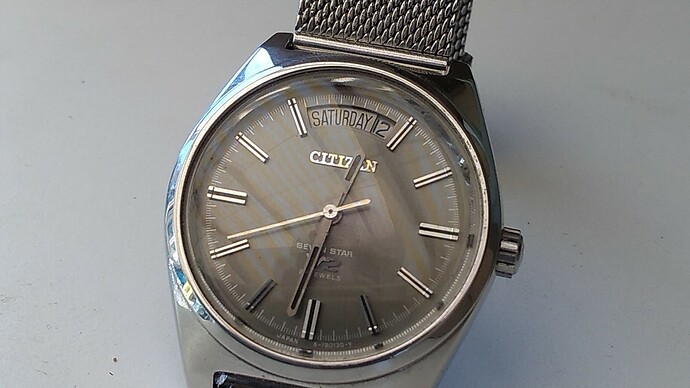 Geen coole Chronomaster maar een oude Crystron uit de seventies met geïntegreerde bracelet