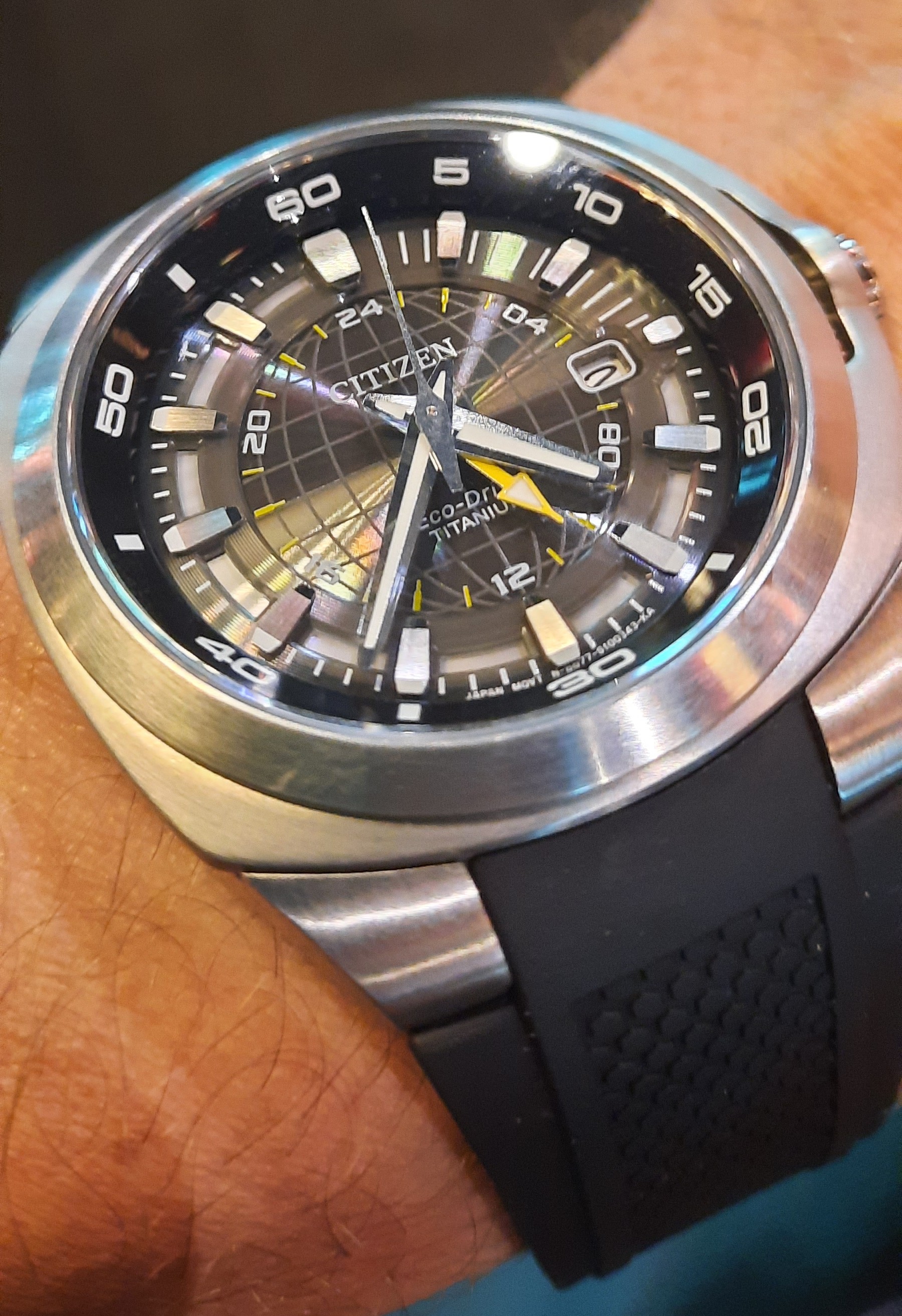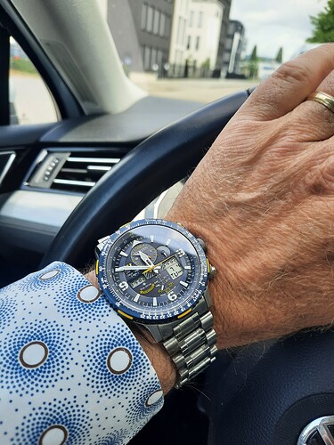 Het ziet er zeker anders uit. Denk niet dat ik het handig zou vinden; gewoon de klok aan de linkerpols. Maar eigenlijk hoef je ook nooit aan die knoppen te zitten tijdens het dragen, in geval je GPS of RC en solar hebt. Mijn Citizen en Astron staan gewoon op de juiste tijd en dag.