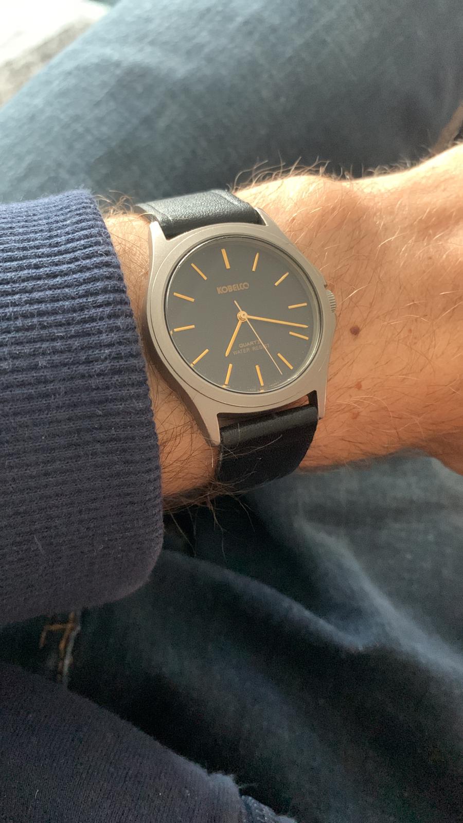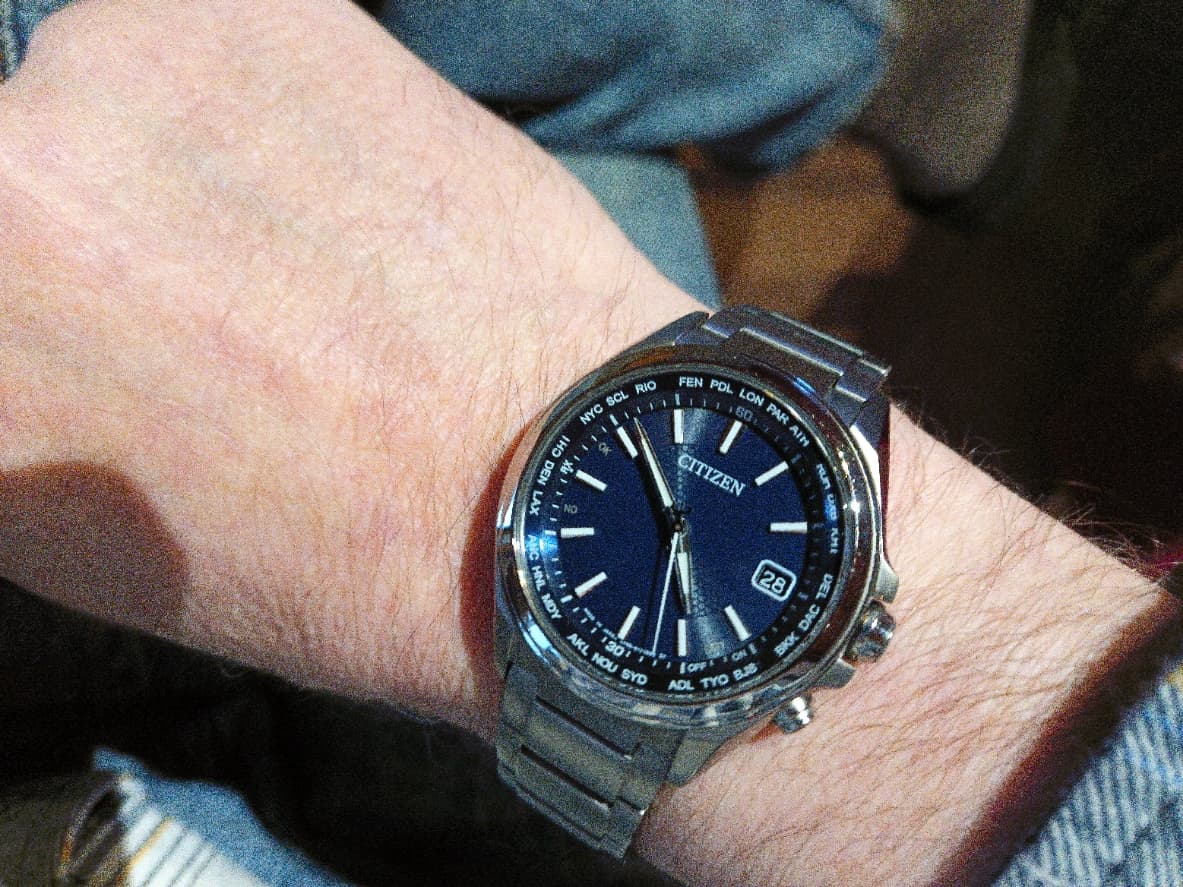 Het is een titanium Citizen uit 1985 met een speciale wijzerplaat voor metaalgigant Kobe Steel aka Kobelco (in Nederland bekend van hun graafmachines), met een inscriptie achterop ter ere van hun 80-jarig jubileum. Hij is lekker klein en plat, en zit me niet in de weg in tegensteling tot mijn gigantische Promaster Sky Pilot horloges. Overigens denk ik dat Citizen dit heeft gemaakt omdat Kobelco het staal en titanium voor ze levert, dat is mijn theorie in ieder geval. En het is meer dan een theorie, want ze hebben in 1999 samen twee titaniumlegeringen ontwikkeld speciaal voor horloges, maar die zijn vrij weinig toegepast (een paar Exceeds en Promasters). Het lijkt me in ieder geval logisch dat ze ook de reguliere metalen leveren, maar dat stond niet expliciet in de bron van Kobe Steel over de legeringen.