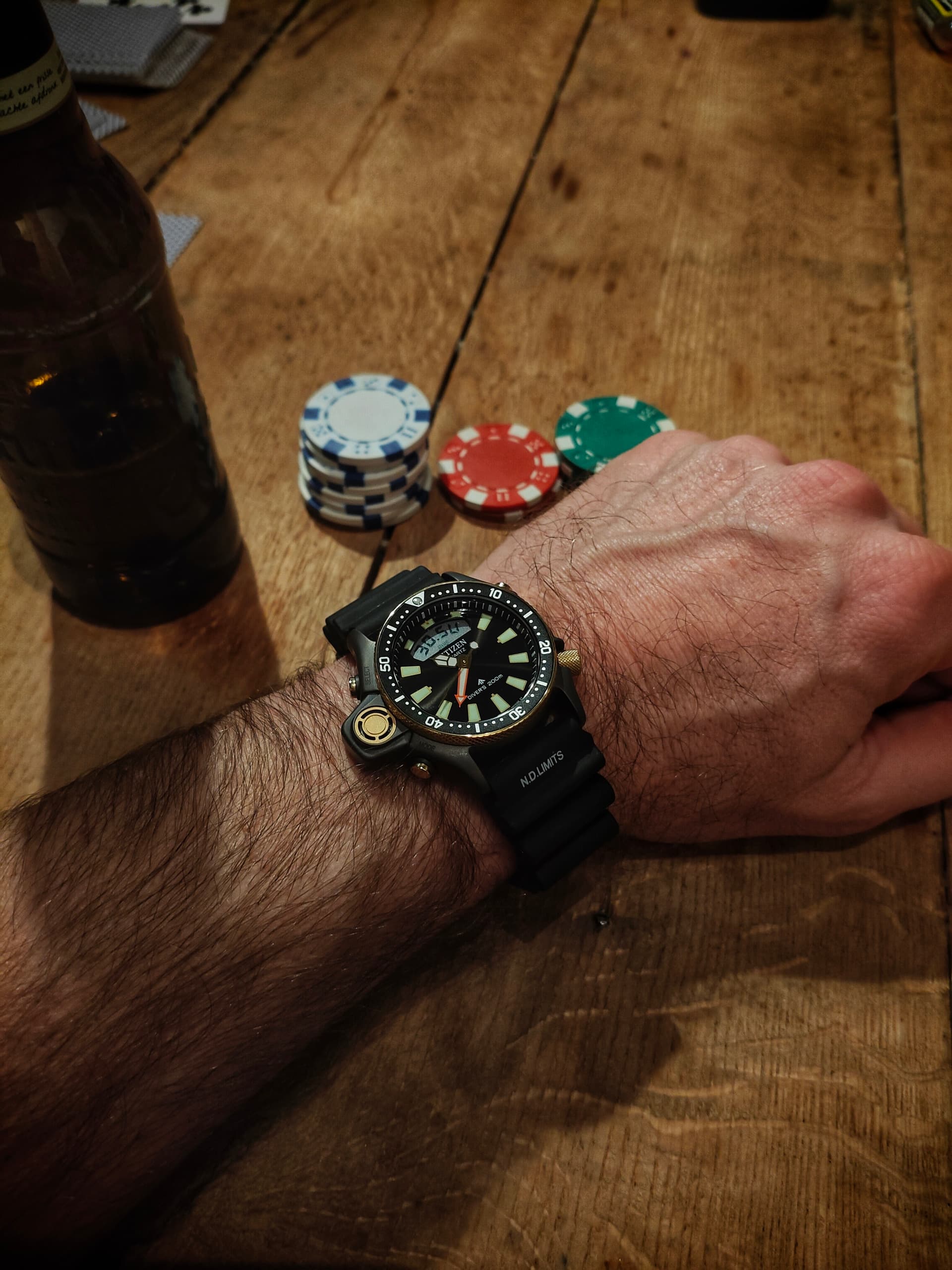 maar, (zo op die foto te zien)… is dat bandje nu niet ietsiepietsie te dik voor het horloge? ![]()