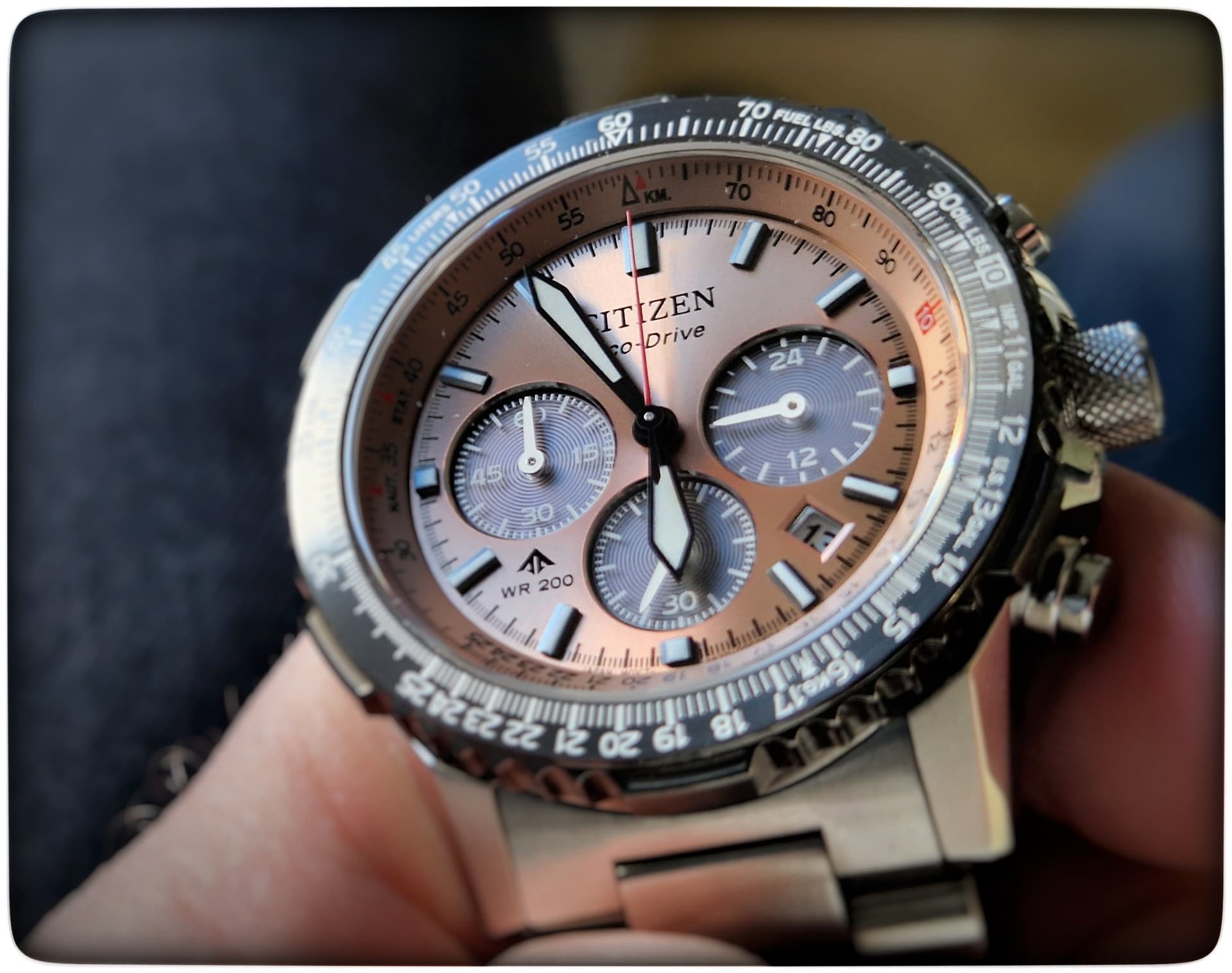 Ik heb de koper/zalm dial gehad. Zat erg fijn en met een prima bandje.