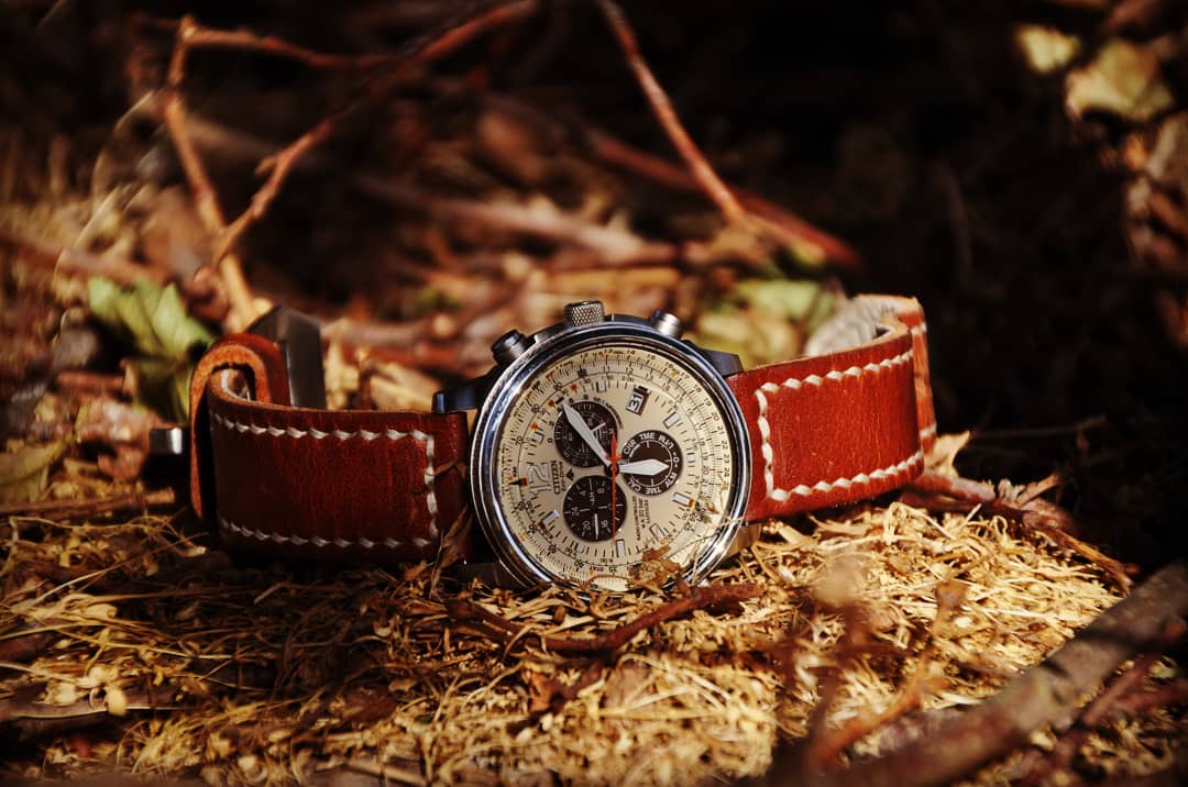 Nu nog een goed bandje scoren. Ik had hem al even op een donkerbruin suède bandje, wat op zich een goede kleurencombinatie is. Het mag echter iets vlotter. Wellicht een donkere band met groen stiksel, maar dat blijkt lastig te vinden.