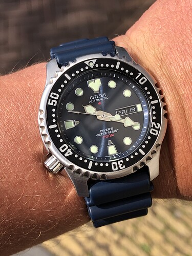 Toch vind ik de rubberen Citizen band niet slecht. Veel beter dan de SKX rubberen band. De Citizen band tapered mooi naar de sluiting. Sluiting is mooi geborsteld met gegraveerd diver logo. Draagt ook nog eens comfortabel.
