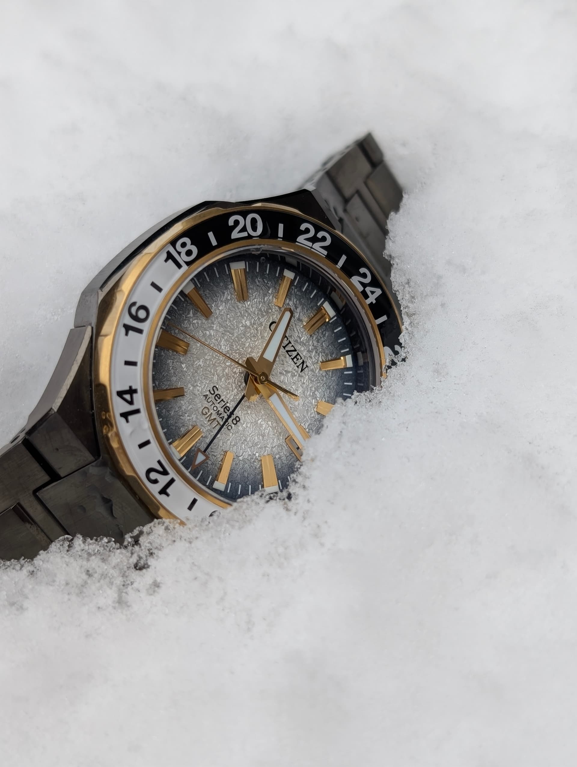 Twee weken terug al een NA over mn jongste aanwinst geschreven. Daar schreef ik over de filosofie achter dit specifieke horloge. Dat is in dit geval “snow on asphalt & citylights by night”