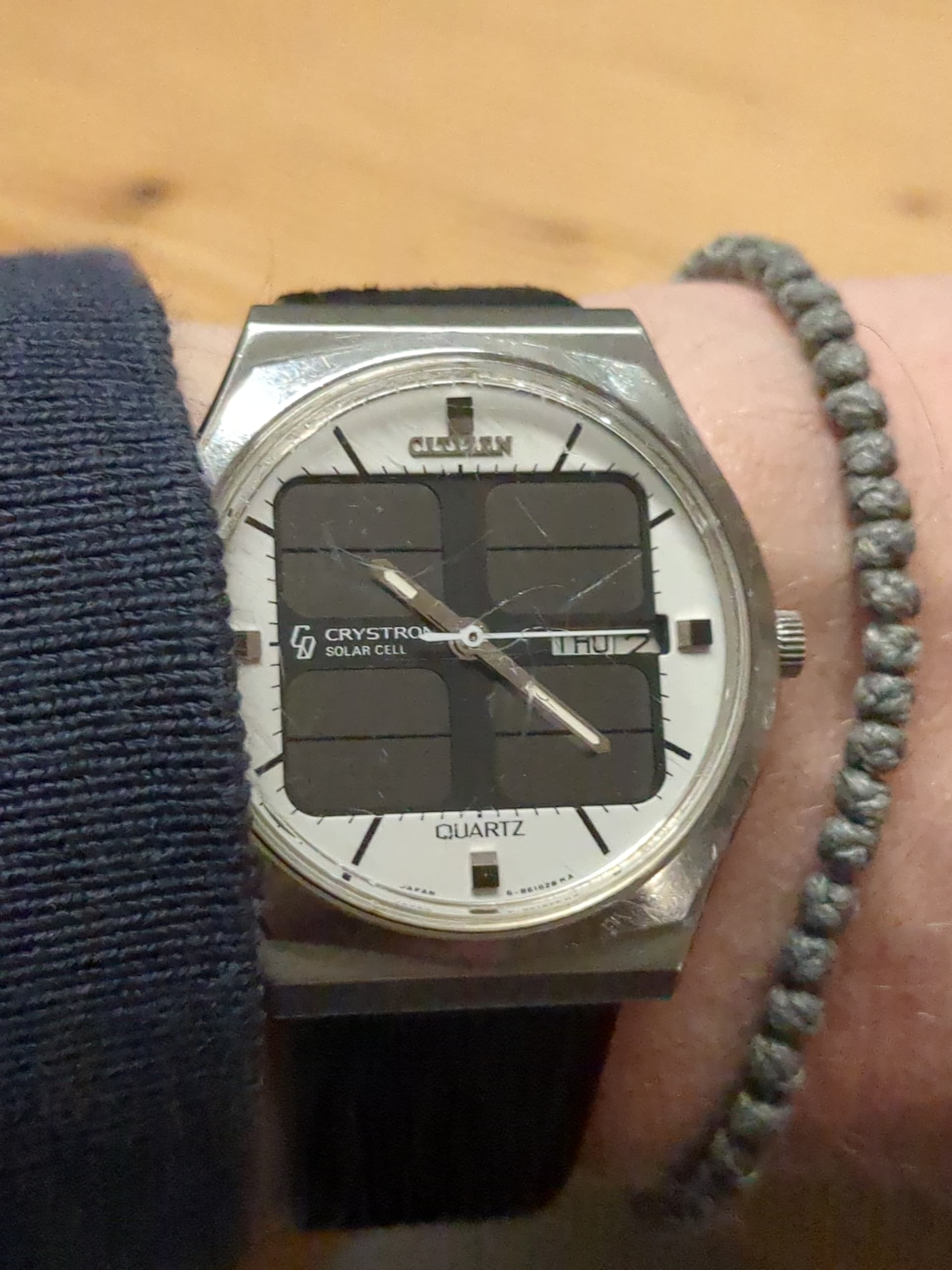 Varta V15h er in. Uurwerk er uit via de voorkant. Voorzichtig met de wijzerplaat met de zonnecellen en de secondewijzer wil graag loskomen van dat pijpje waar ie op zit bij het lostrekken.