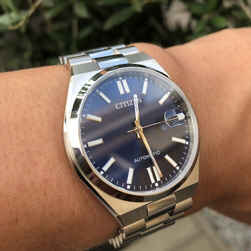Eerste indruk, had de band wat zwaarder ingeschat maar is erg licht, ben benieuwd hoe die draagt. Sunburst blauw is erg strak, het blauw maakt het horloge ingetogen vergeleken geel of groen. Mijn vrouw vindt hem classy.
