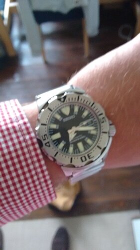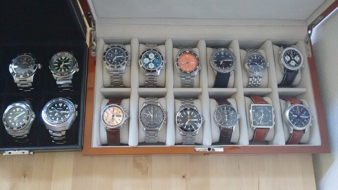 Jaren geleden met de hobby gestart en na drie jaren van rust heb ik afgelopen september de ‘hobby’ weer opgepakt. Het begon in september met een Tag Heuer Monaco. Waarna ik rond februari toch wel heel veel zin kreeg in een SKX011 met andere wijzers erop (gekocht bij Rob). De maanden erna een beetje het Seiko virus onder de leden gehad en er volgden een Shogun en een SUN019. Tussendoor nog een fantastische Gavox gekocht en een Biegert en Funk (die heeft mijn vriendin inmiddels geconfisqueerd) en de laatste aanwinst is een Steinhart.