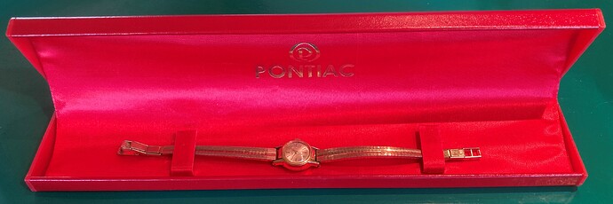 Nu dan een 40 jarige Pontiac dames horloge in de originele doos.