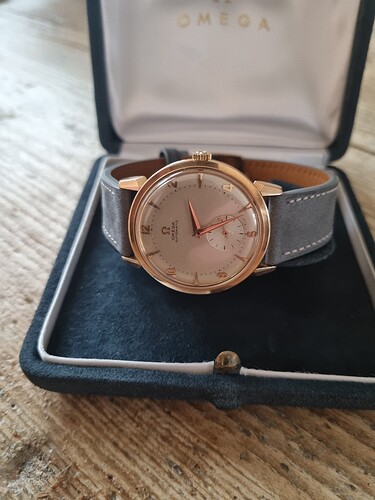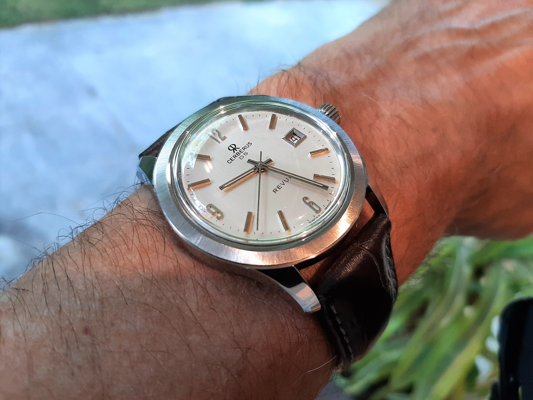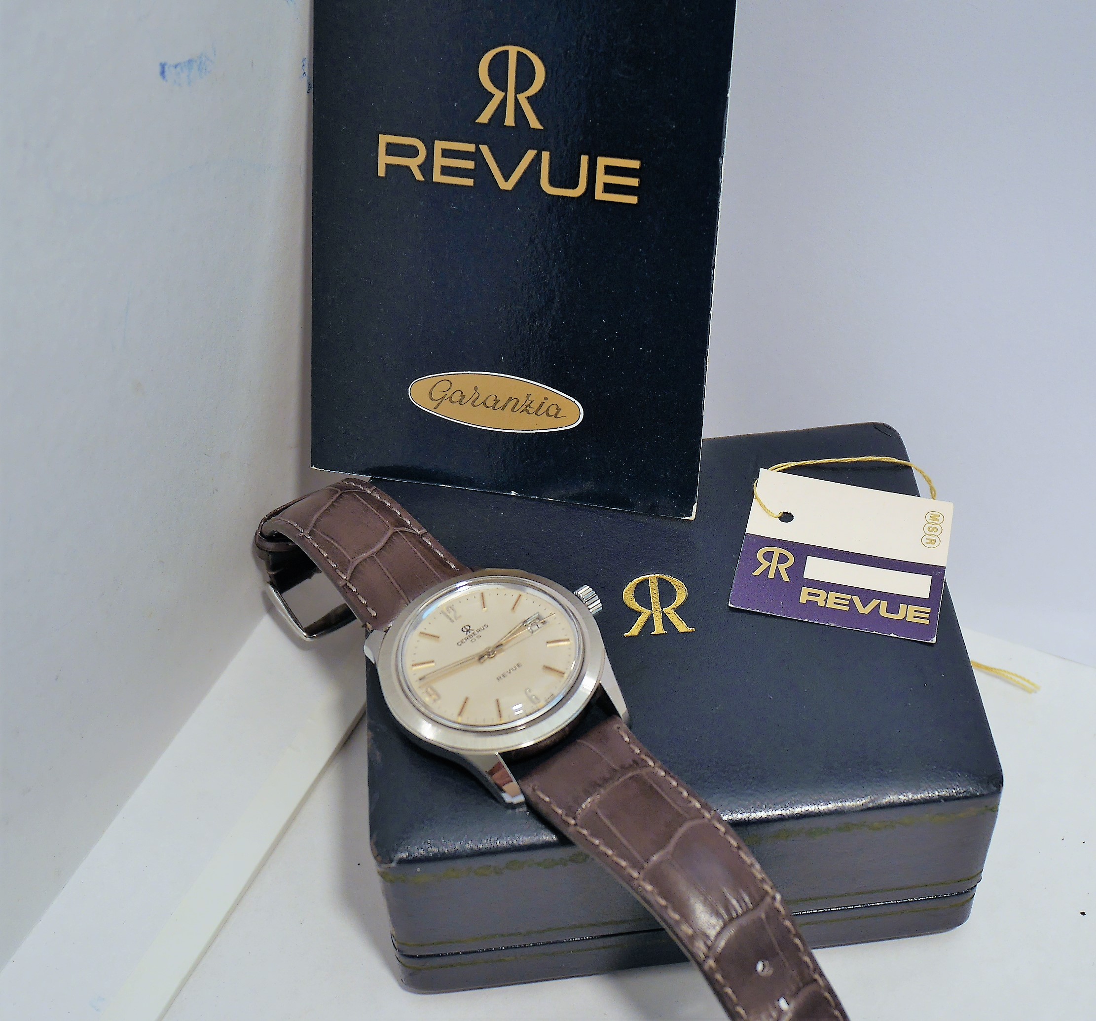 Revue circa jaren 70, in een 40mm kast diameter met MSR manufacture handwind uurwerk. Ik ga de collectie verkleinen, deze gaat blauw.