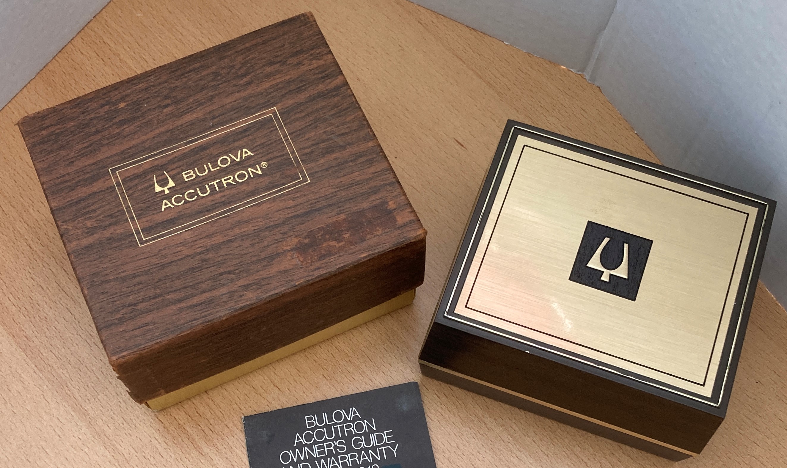 Ik heb in feite niets met horloges die op batterijen werken, maar deze accutron vind ik wel een hele fraaie, dus laat ik hier een accutron zien uit mijn collectie, met de doos en over-doos.