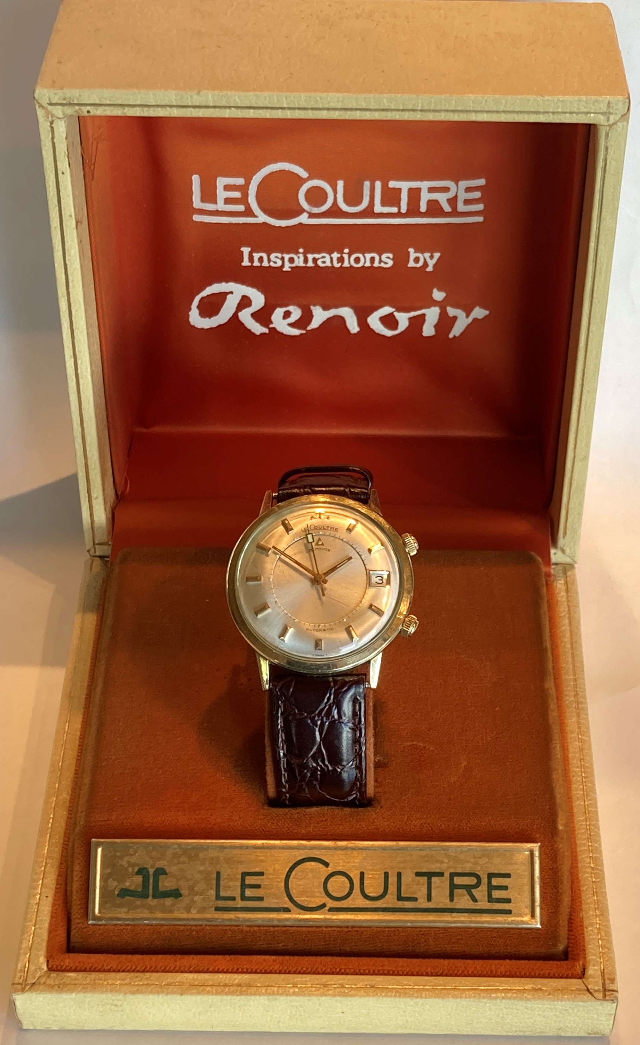Hier dan de foto’s van de unieke LC Memovox met de Renoir doos die in mijn collectie nog steeds expressief aanwezig is.