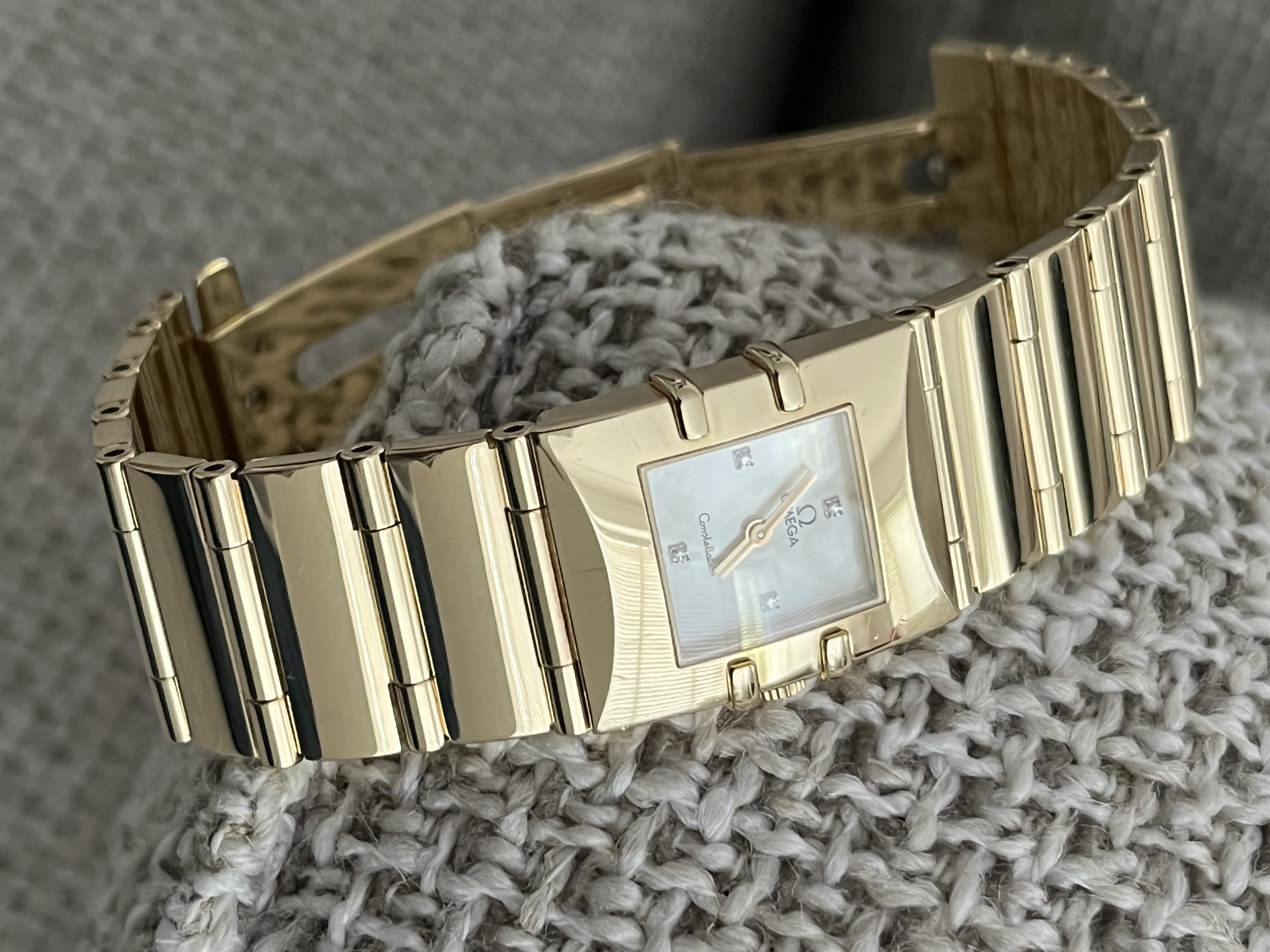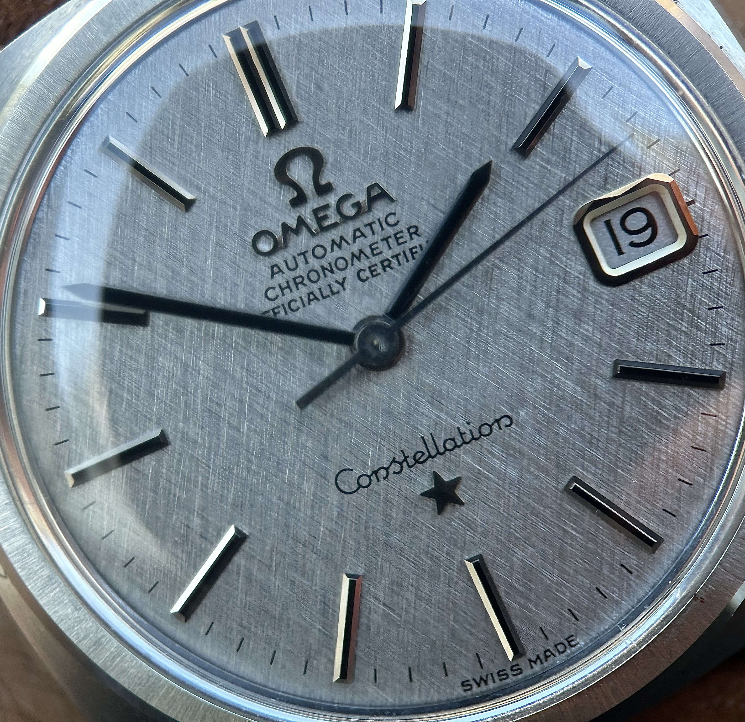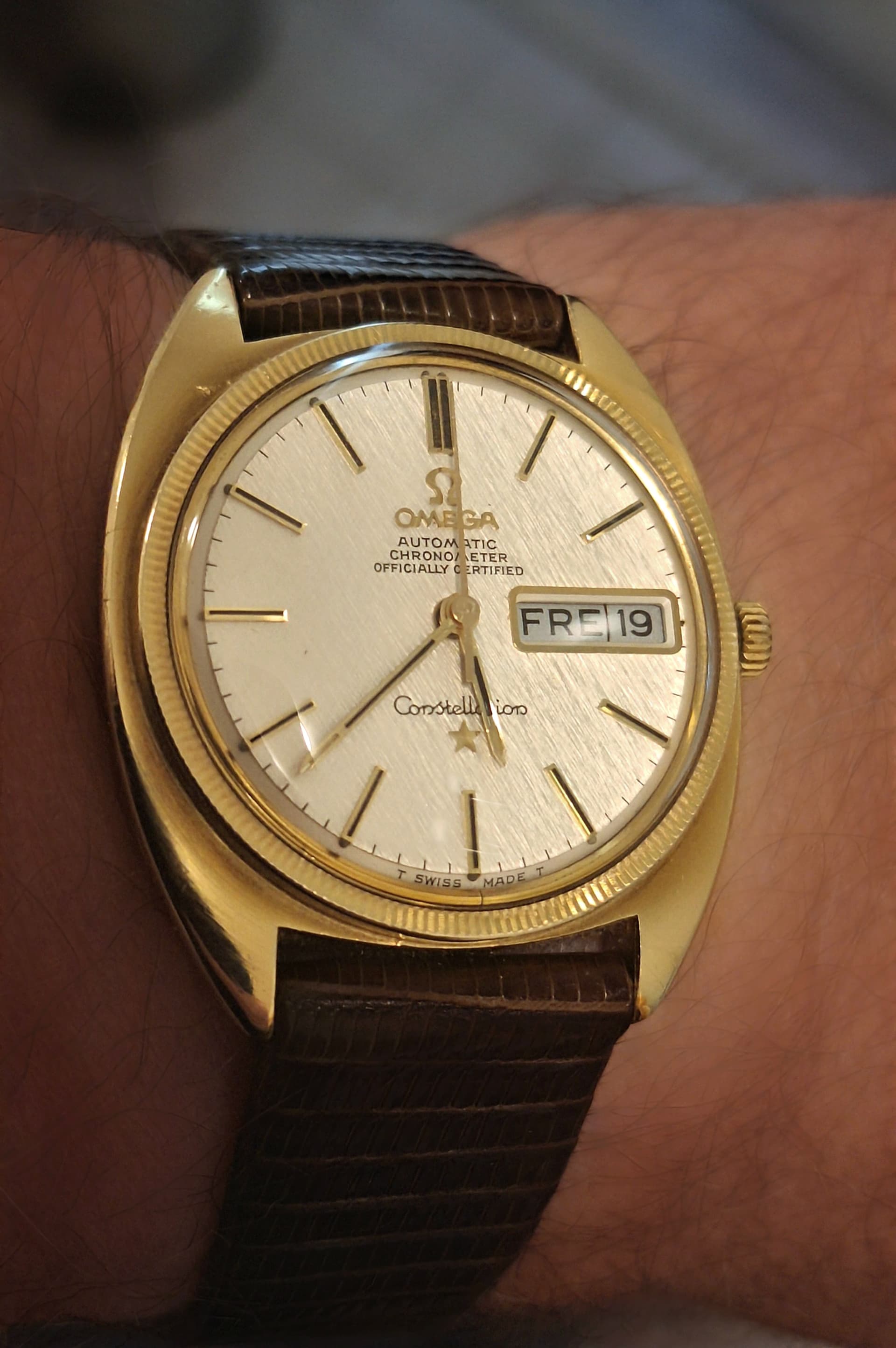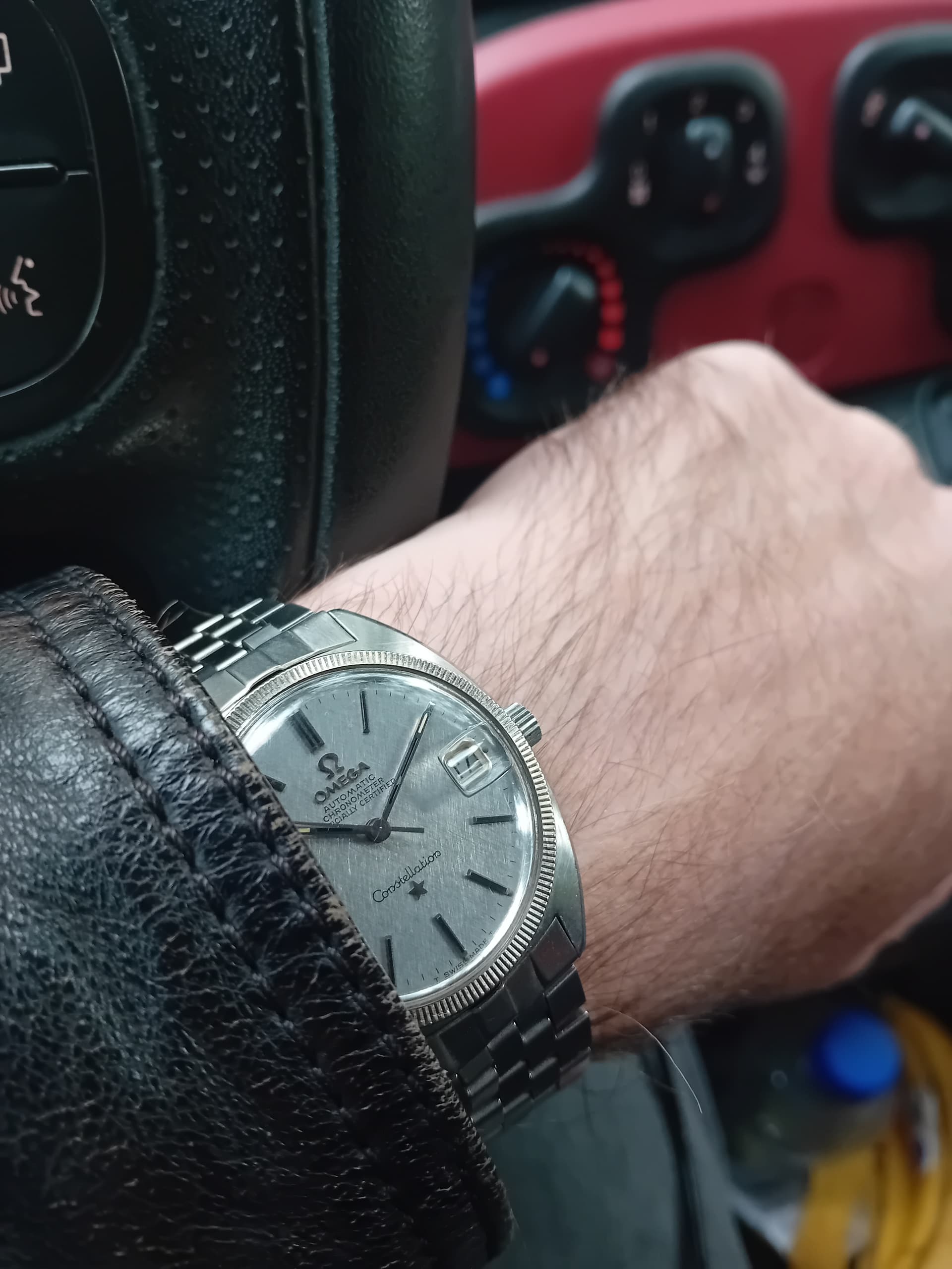 Een prachtig zoemende Constellation. Helaas vind ik de band te dik voor mijn pols, dus krijgt het horloge bijna geen draagtijd meer ![]()