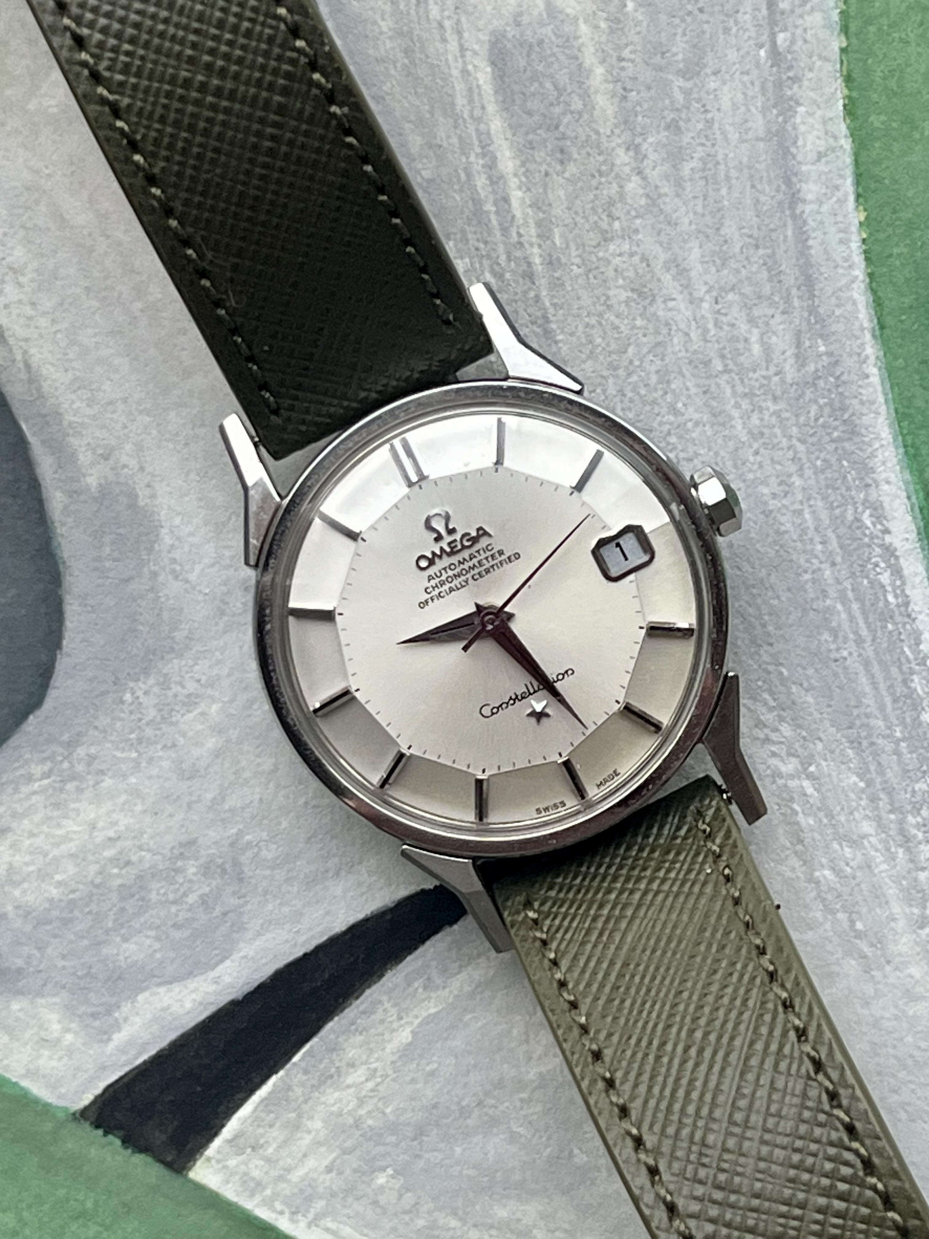 168.0056 c-shape in vlijmscherpe originele conditie. Compleet met originele band, gesp en hangertje (correcte serienummer).