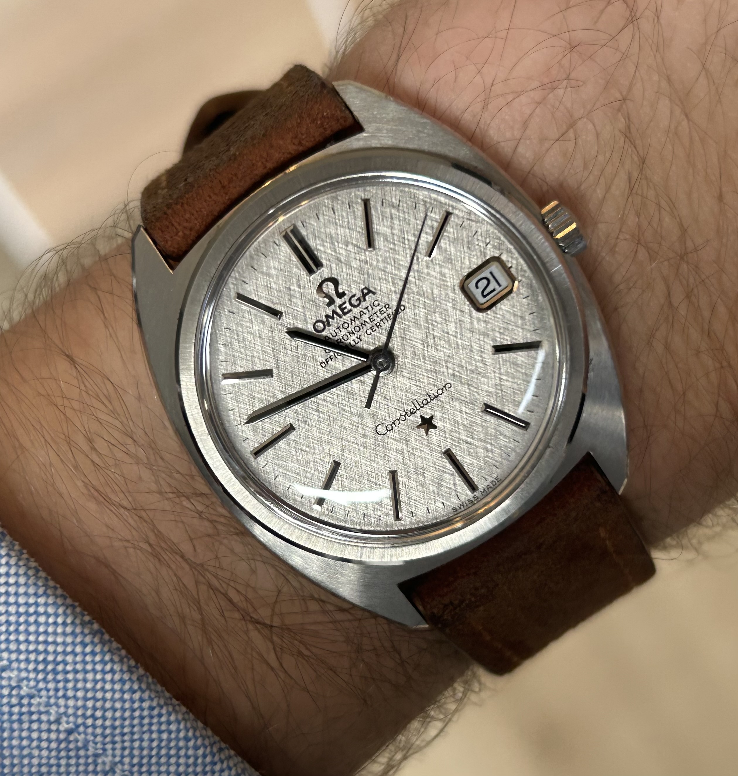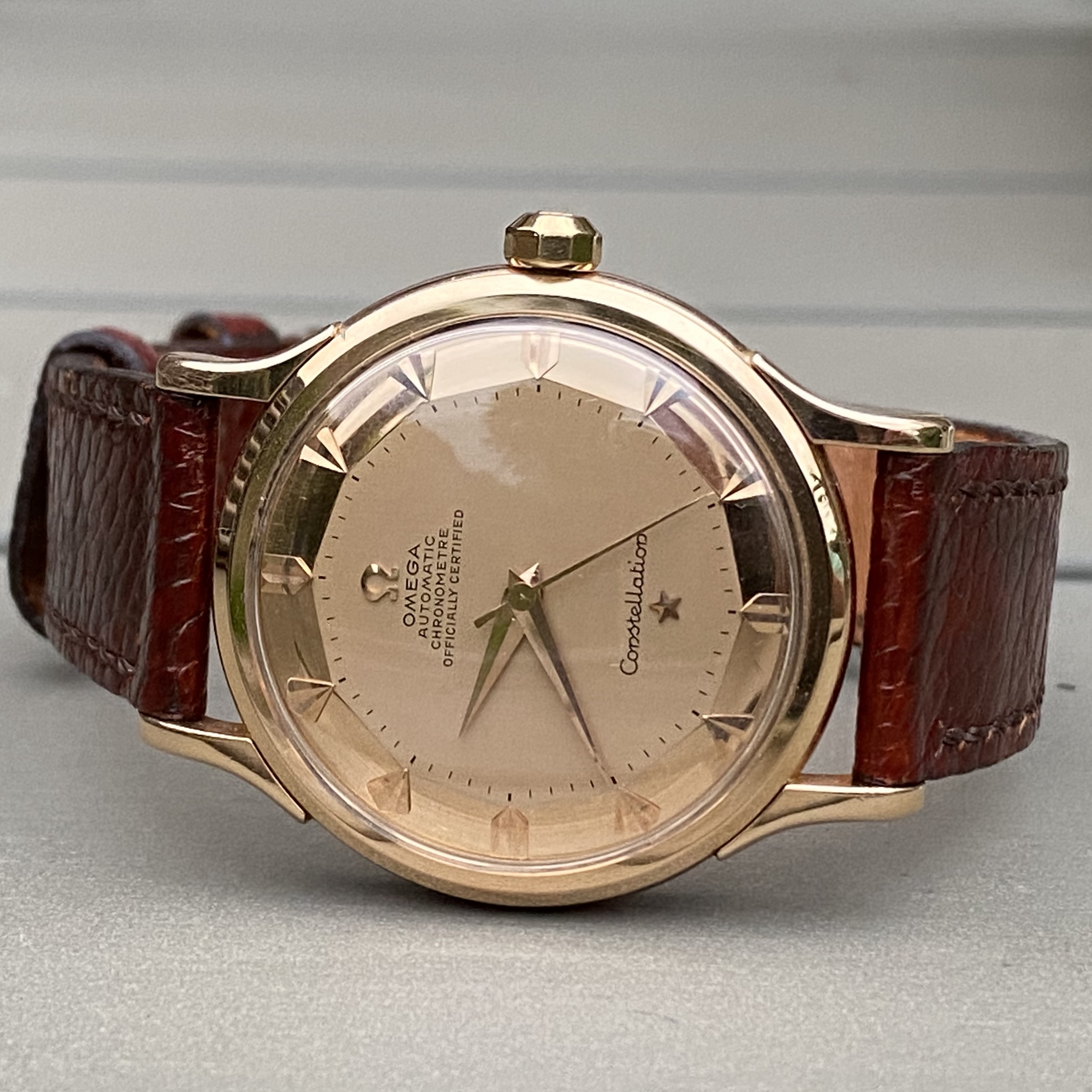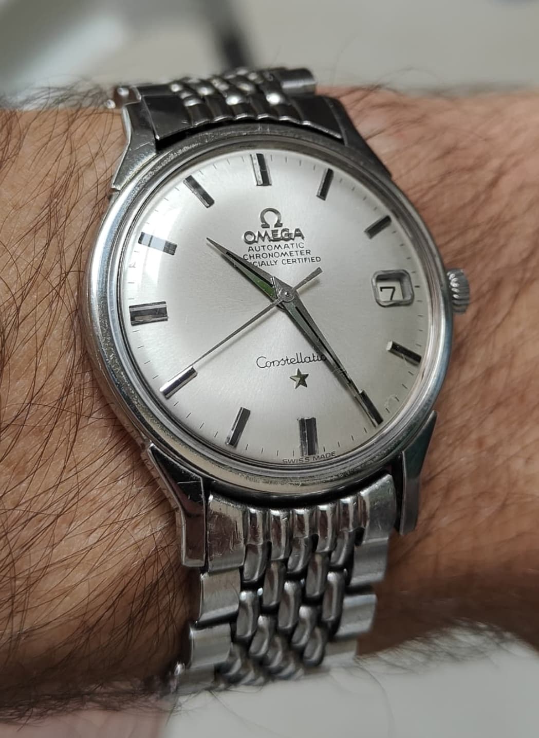 Ik heb ook bronnen gelezen die zeggen dat deze in de overgangsfase naar een nieuwe, strakkere, stijl, geleverd werden. Nog wel het vertrouwde uurwerk, de klassieke kast met typerende lugs en tegelijk al een veel strakkere dial.