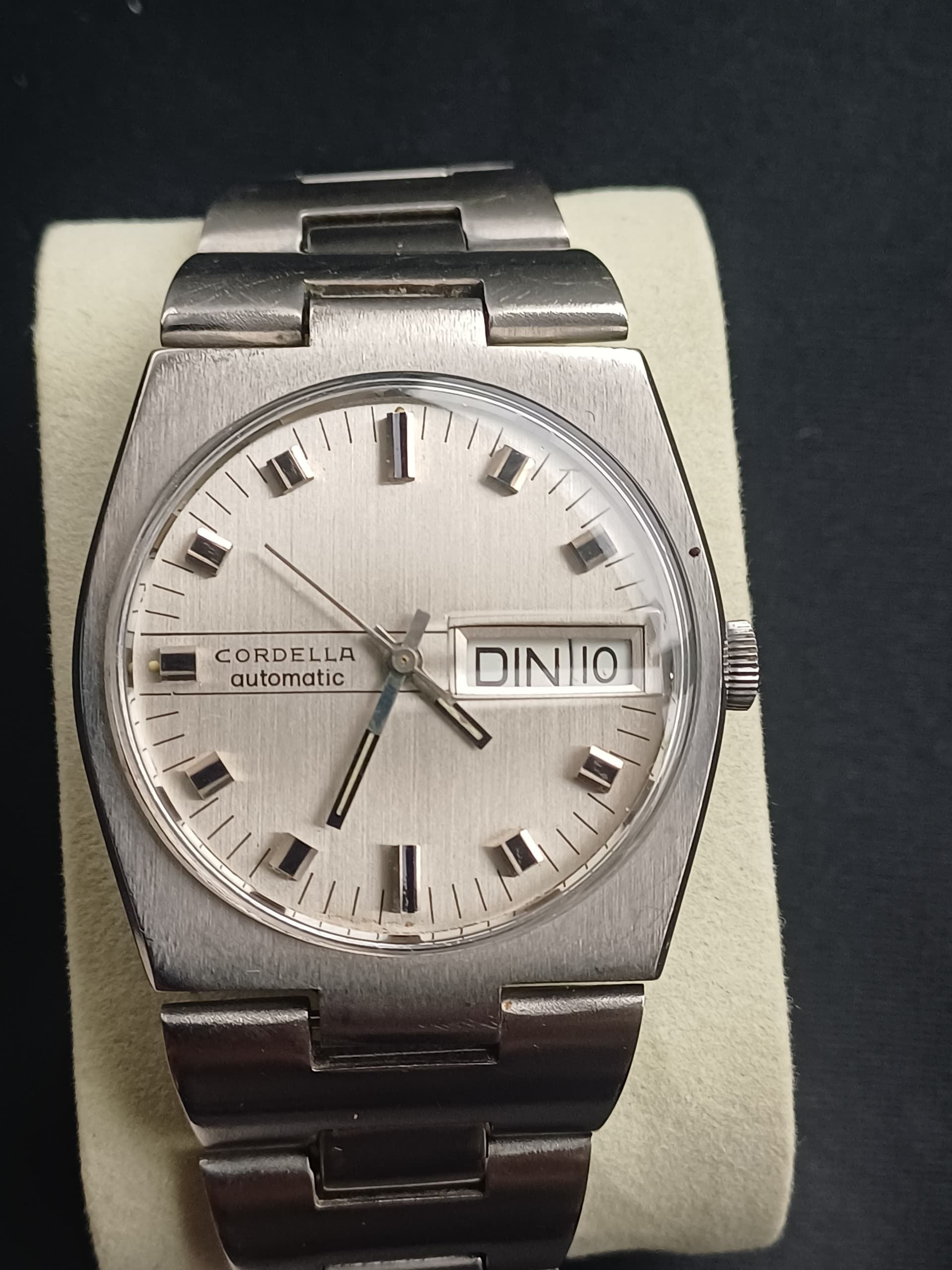 Te koop Cordella automaat horloge is in nette stsat met mooie band die goed is af te stellen en past tot 20,5 cm polsen. Horloge heeft service gehad bon aanwezig en houd prima de tijd. Dag datum functie werkt naar behoren. Plexy is in goede staat.