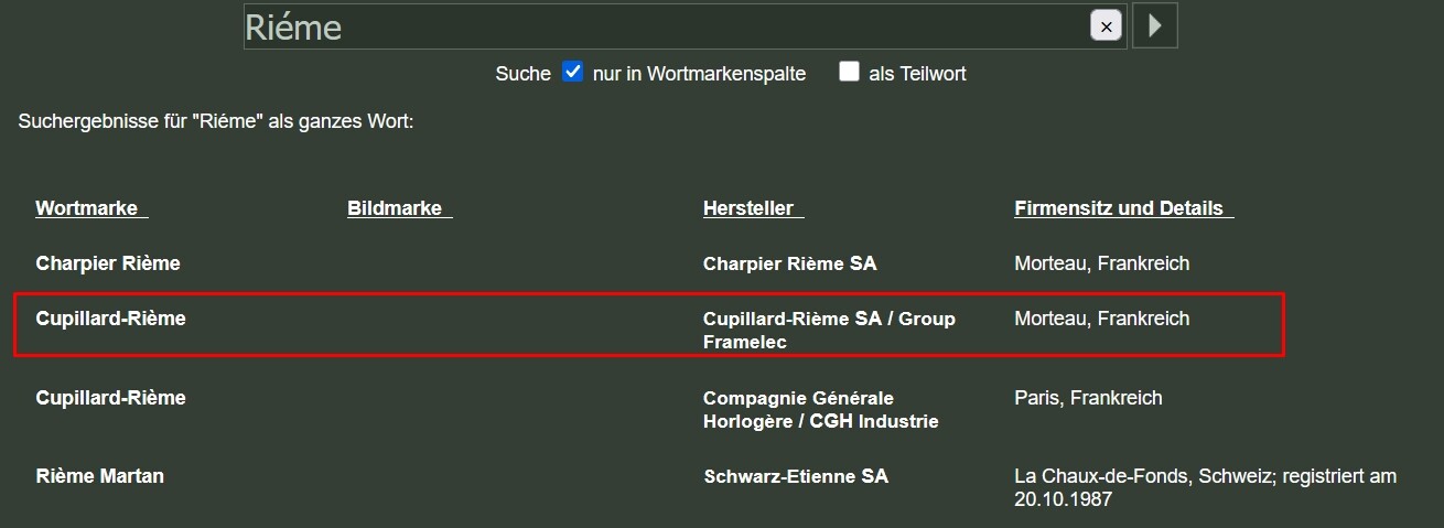 Op Google vind je onder de zoekterm ‘Cupillard Riéme montres’ een aardig aantal verwijzingen naar andere Riéme mode horloges, meestal ook uit de periode van zo’n 40 jaar terug.