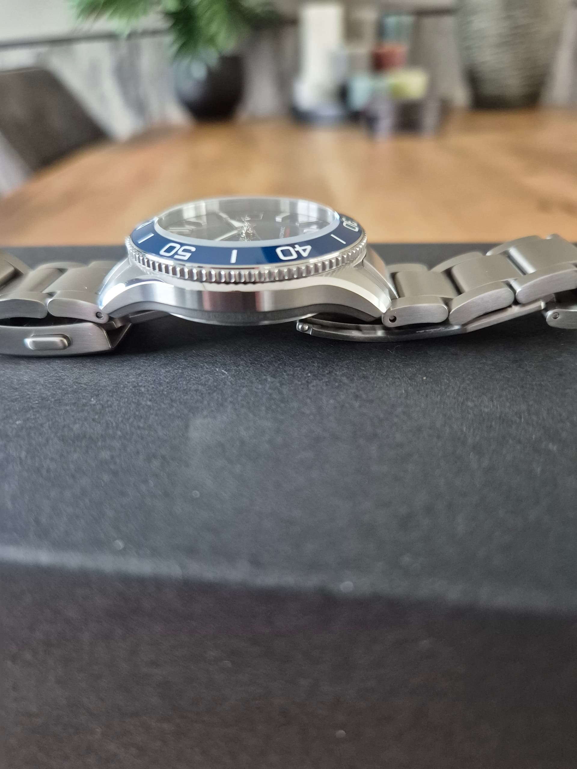 Wat veegjes op de clasp en band als je goed zoekt. Kast en glas niets te bespeuren.